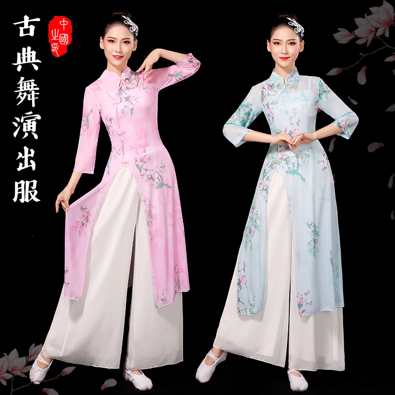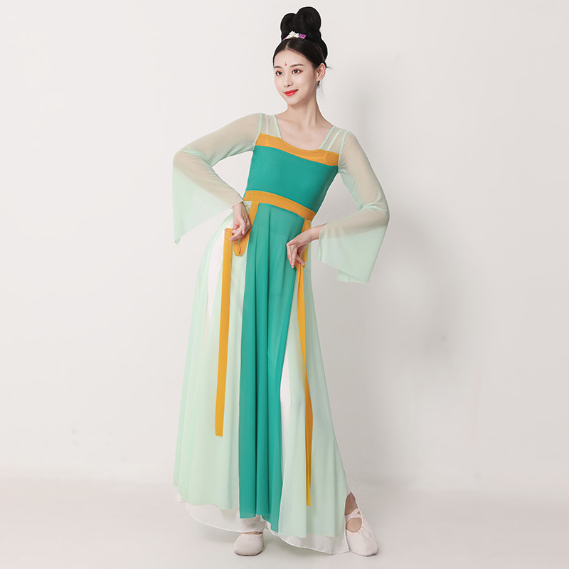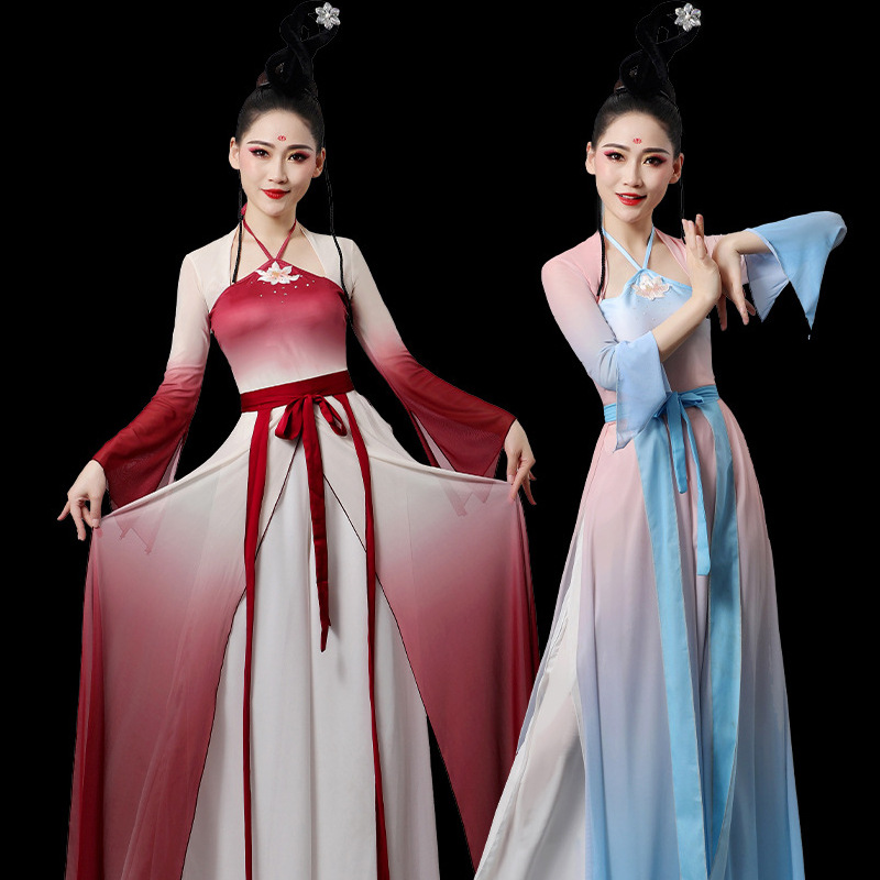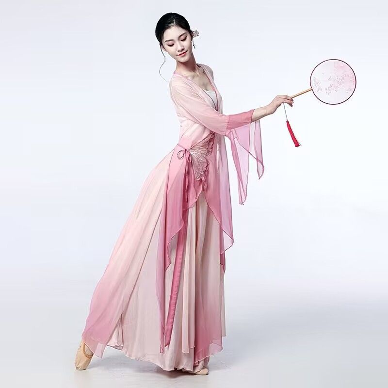 古典舞蹈服中国舞练功服女身韵飘逸春三月民族舞蹈演出服纱衣艺考