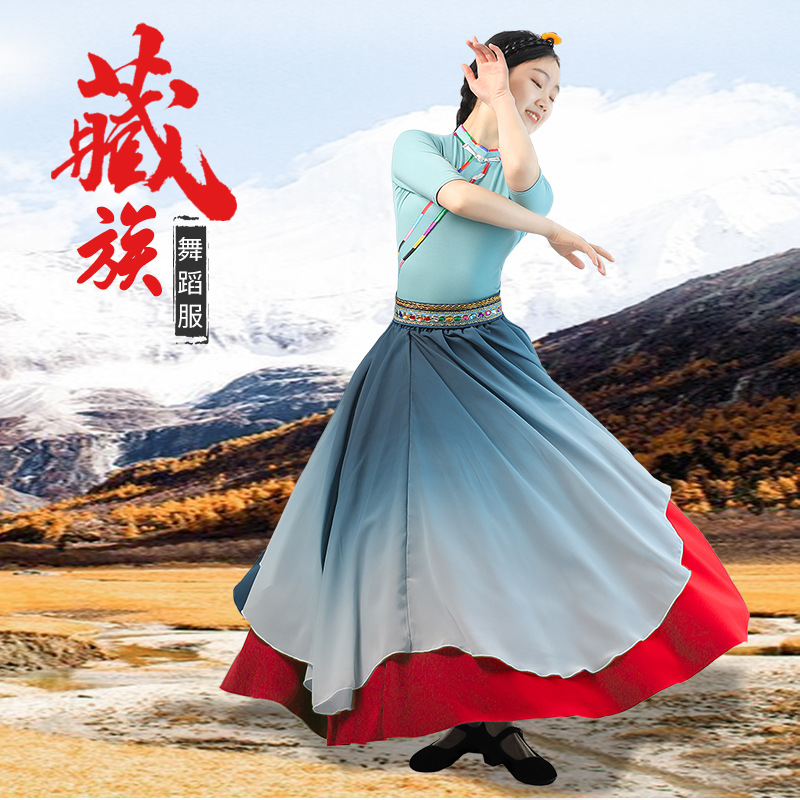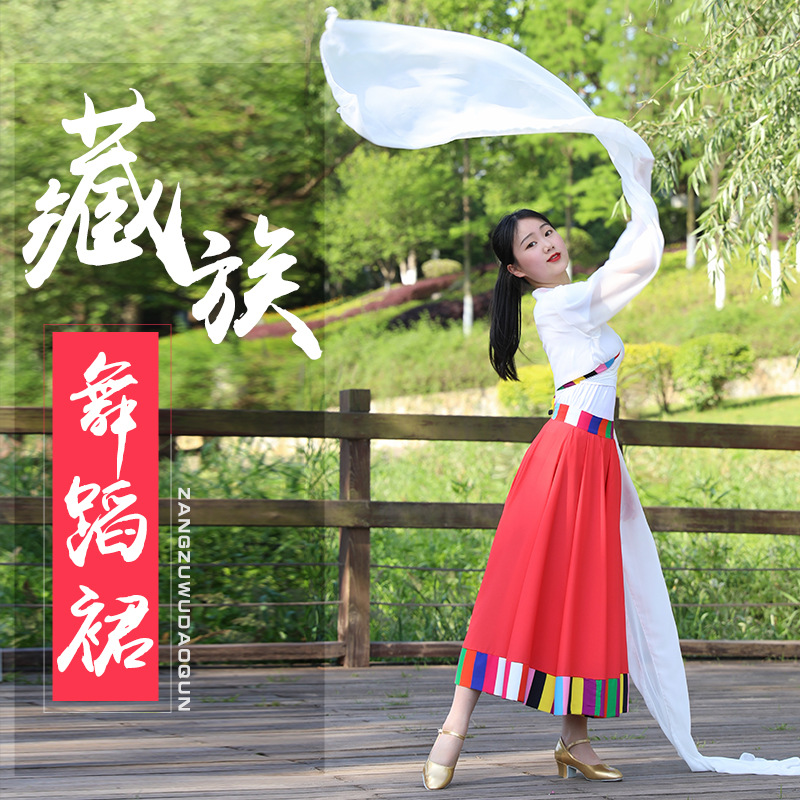 成人广场舞拉萨练习艺考水袖卓玛民族风大摆裙藏族舞蹈演出服装女