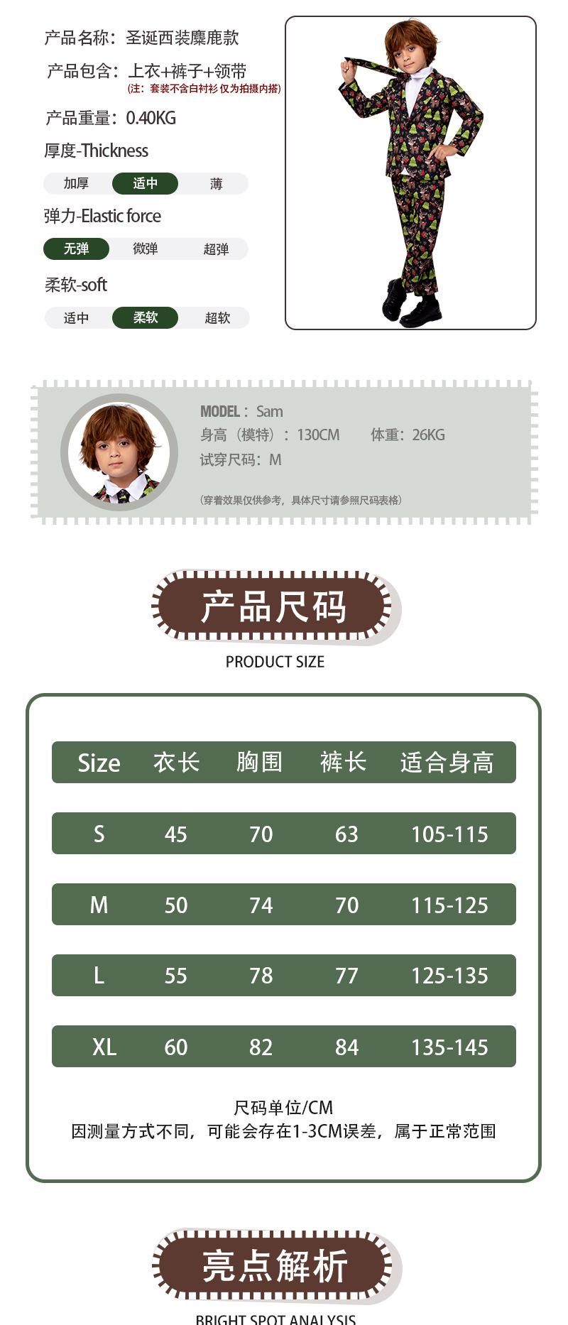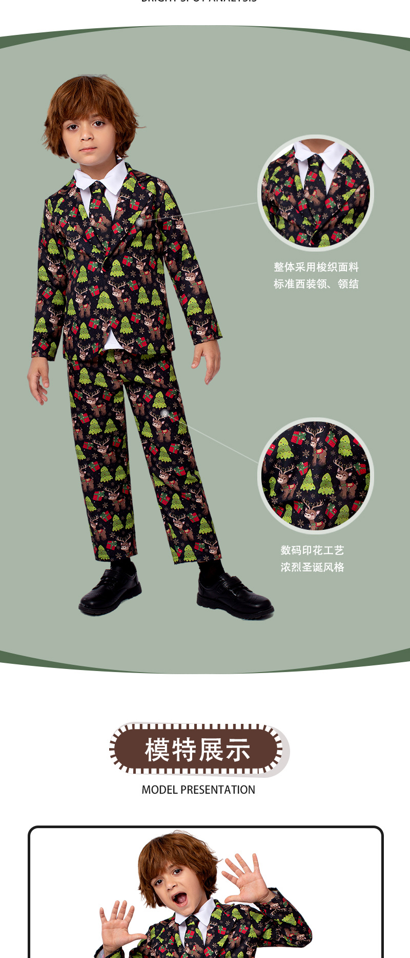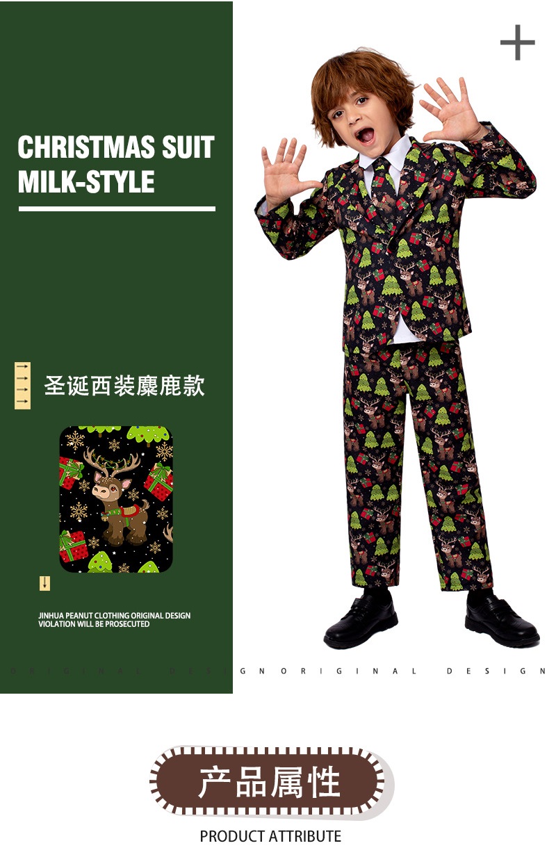 圣诞节服装 儿童麋鹿西装外套节日派对舞台装扮表演服儿童演出服