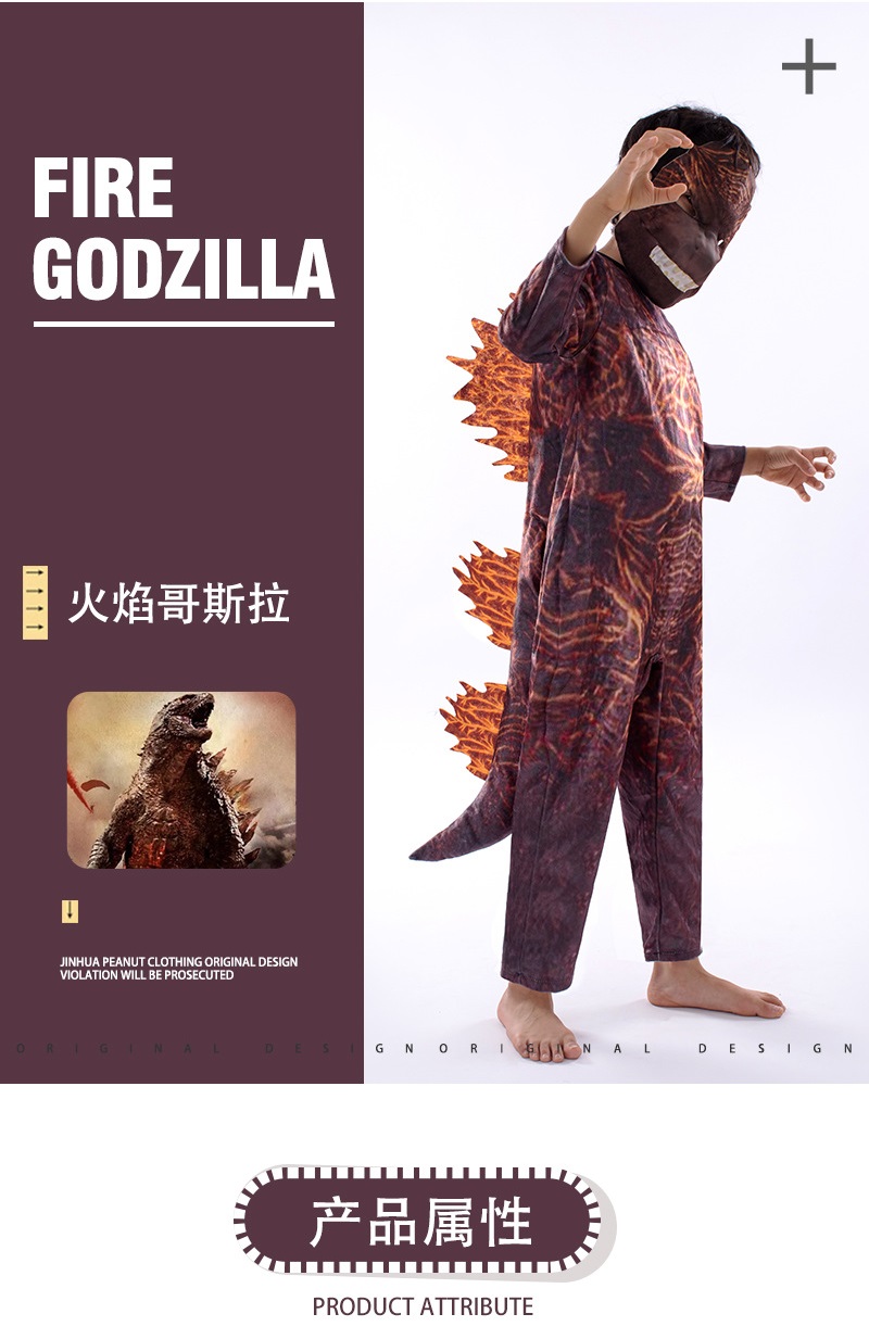 新款火焰哥斯拉cos服角色扮演哥吉拉舞台连体衣儿童人偶服表演服