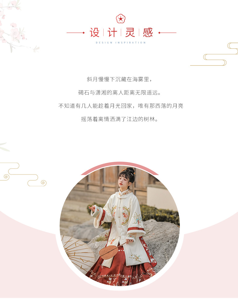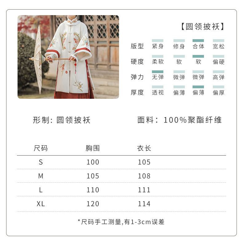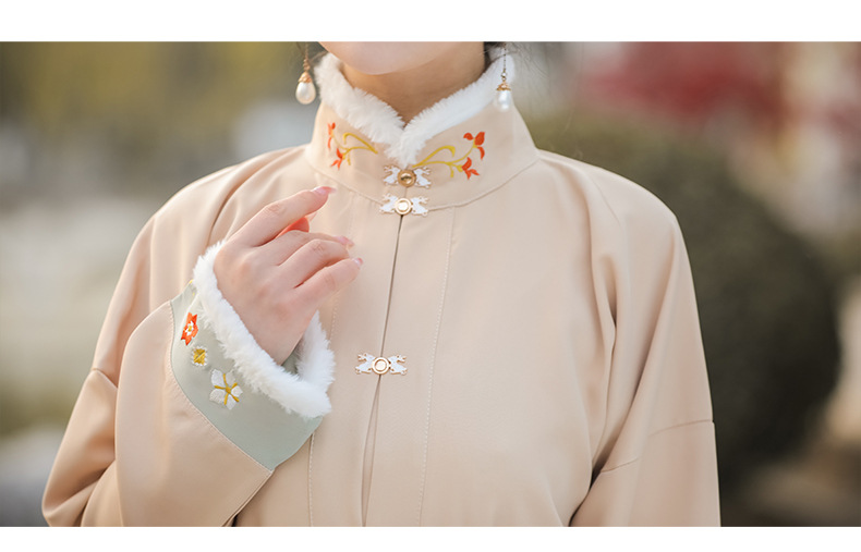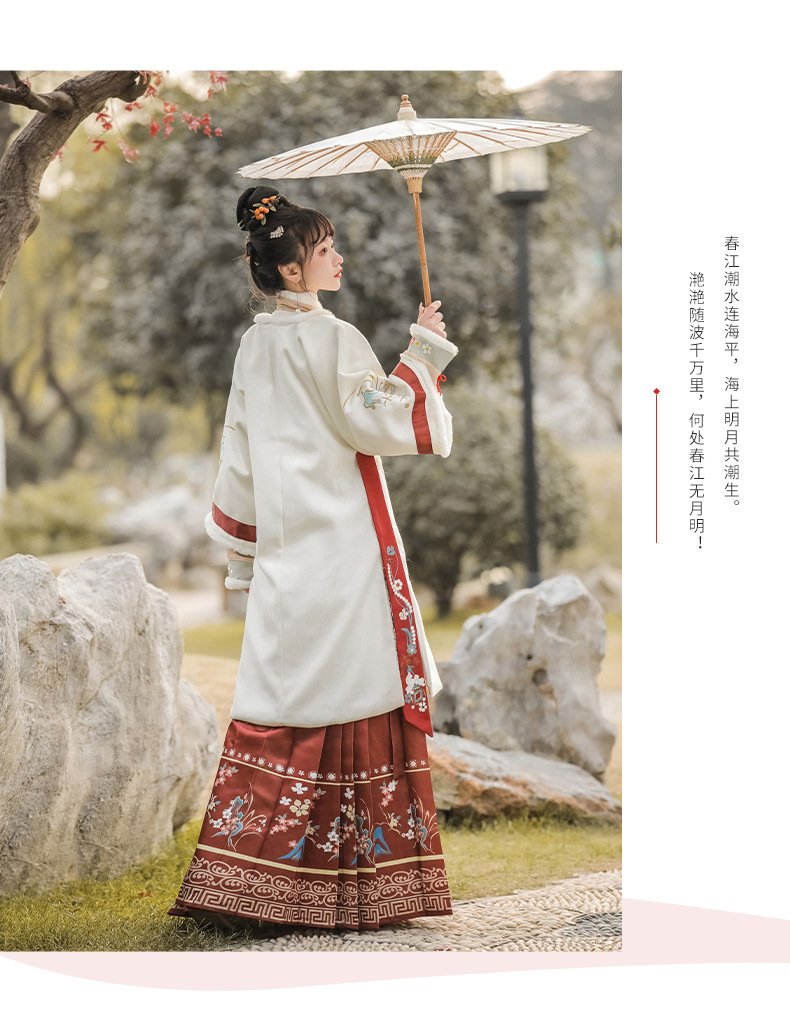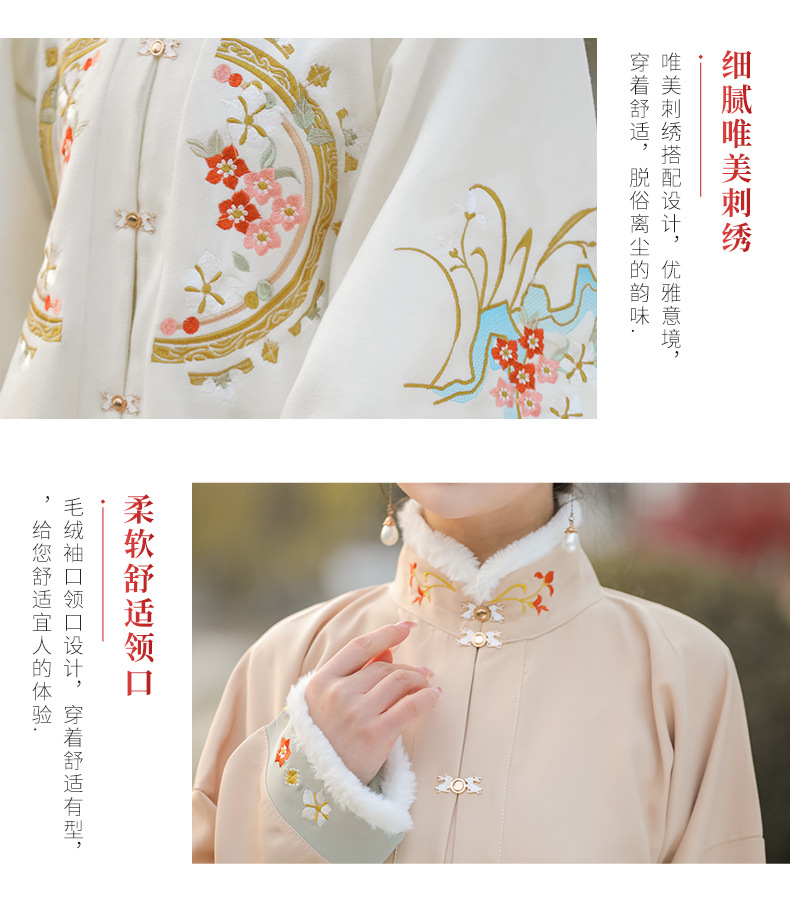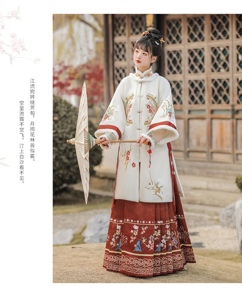 原创汉服女中国风圆领披袄秋冬季保暖立领新年战袍对襟马面裙套装
