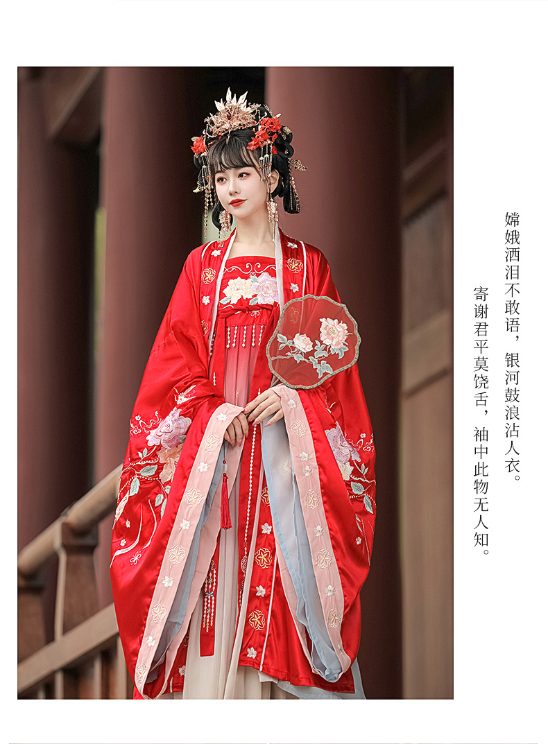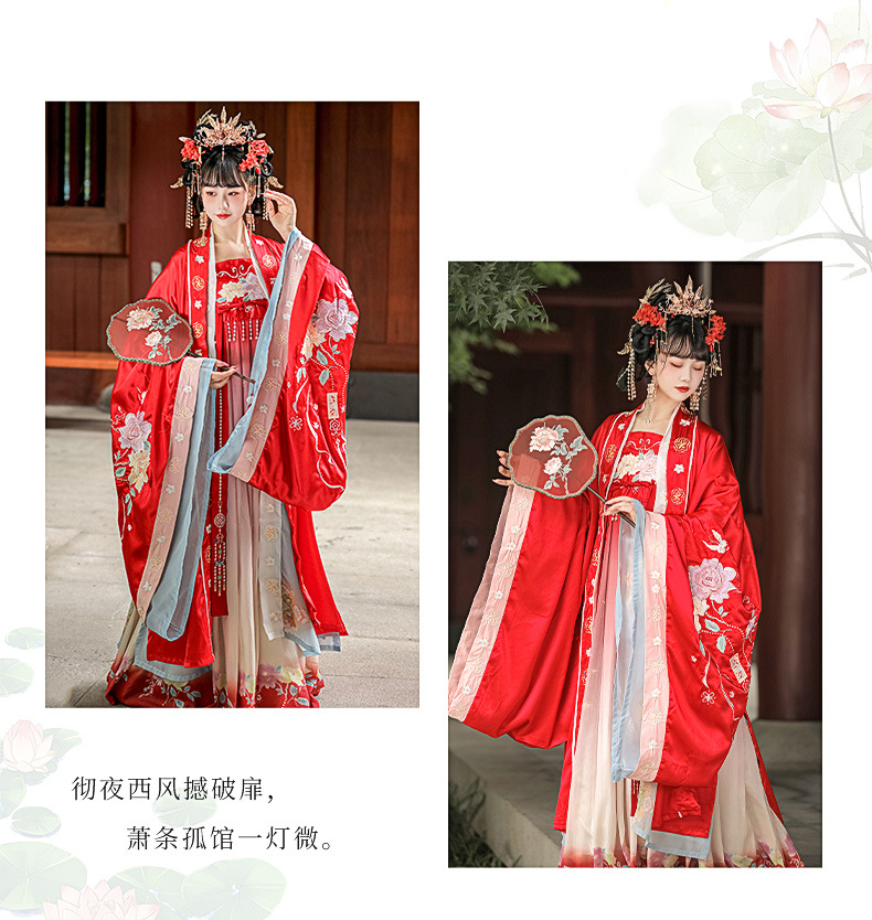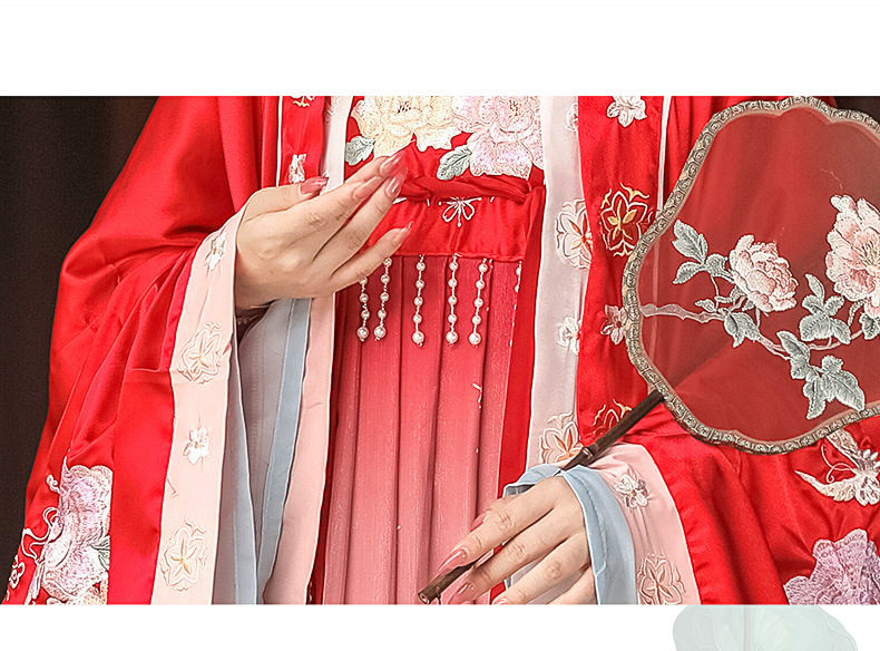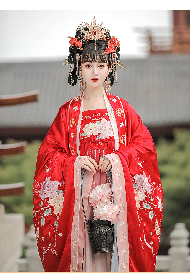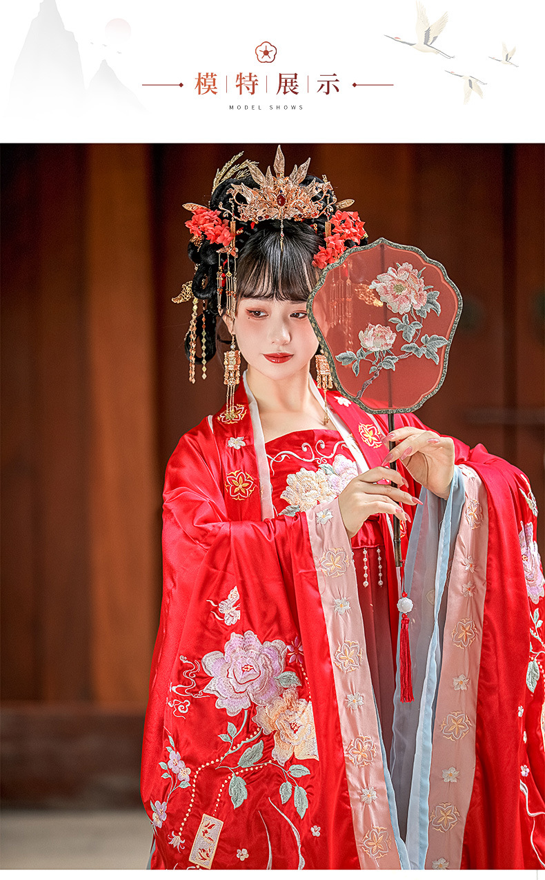原创汉服女红色大袖衫唐制刺绣诃子裙中国风婚服花嫁春秋冬款套装