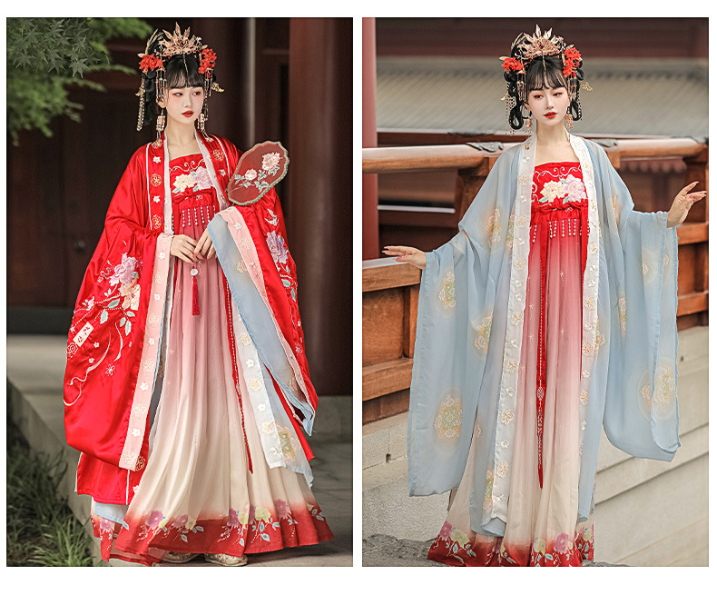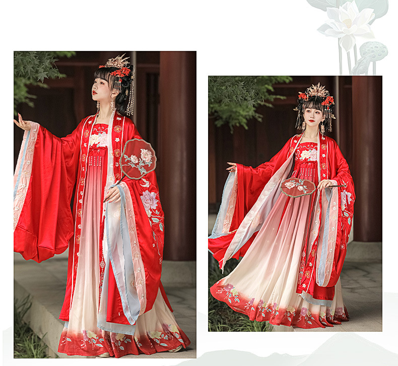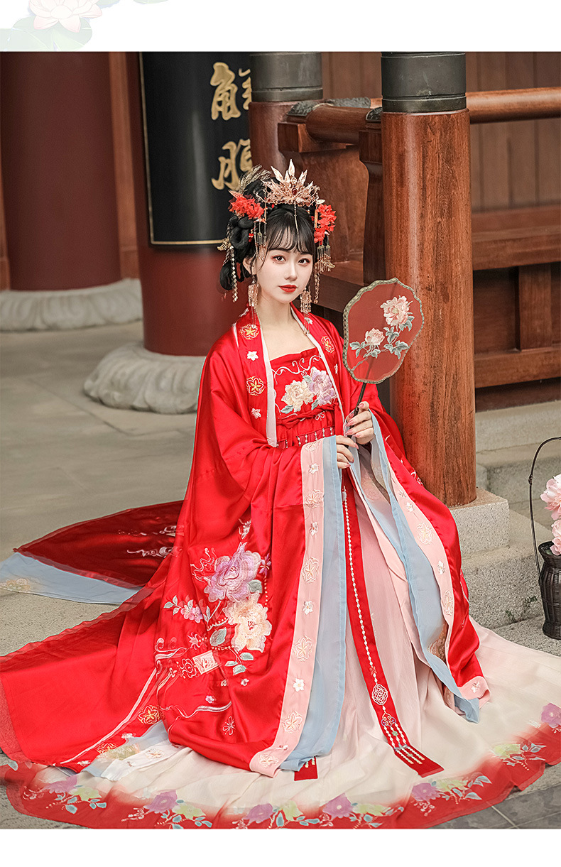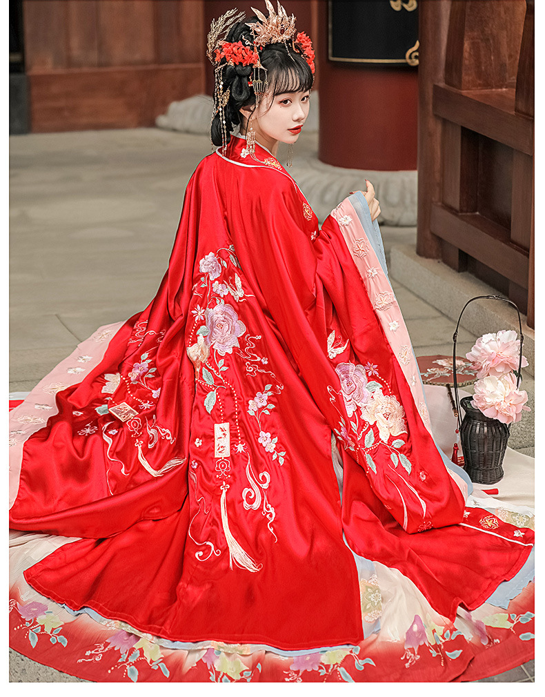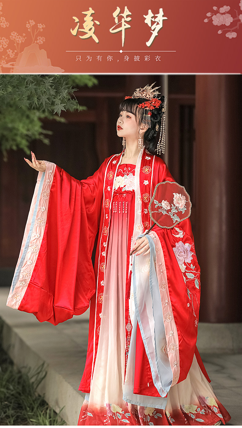 原创汉服女红色大袖衫唐制刺绣诃子裙中国风婚服花嫁春秋冬款套装