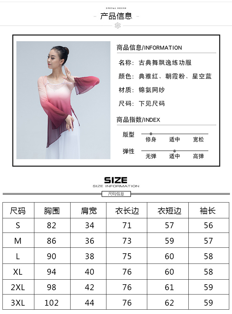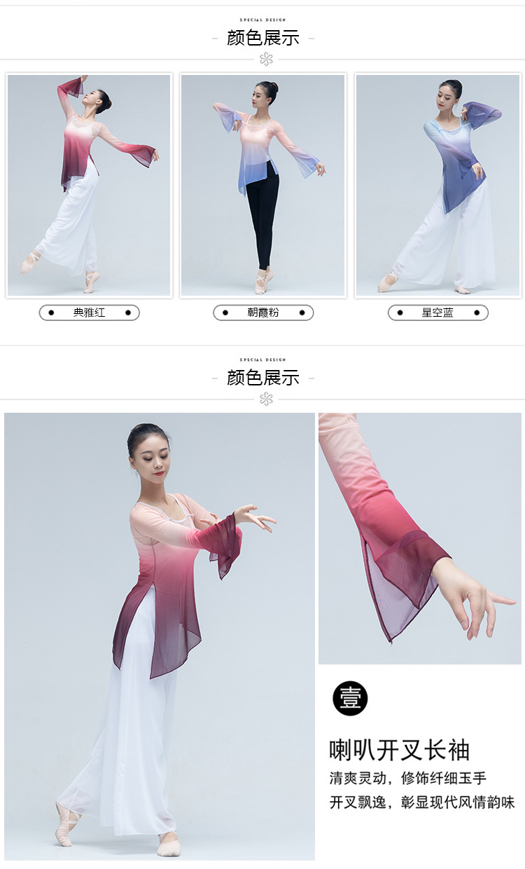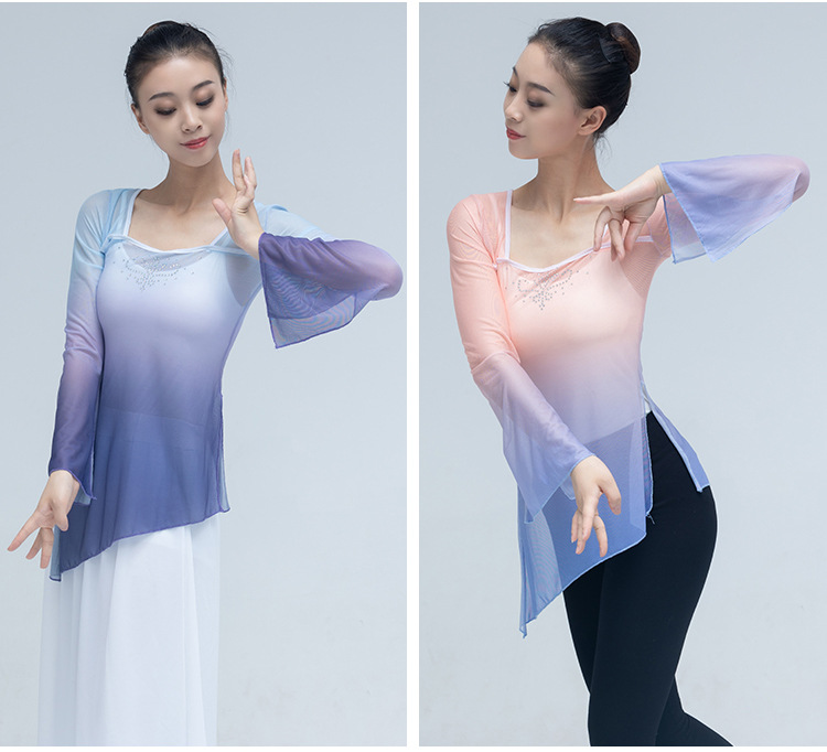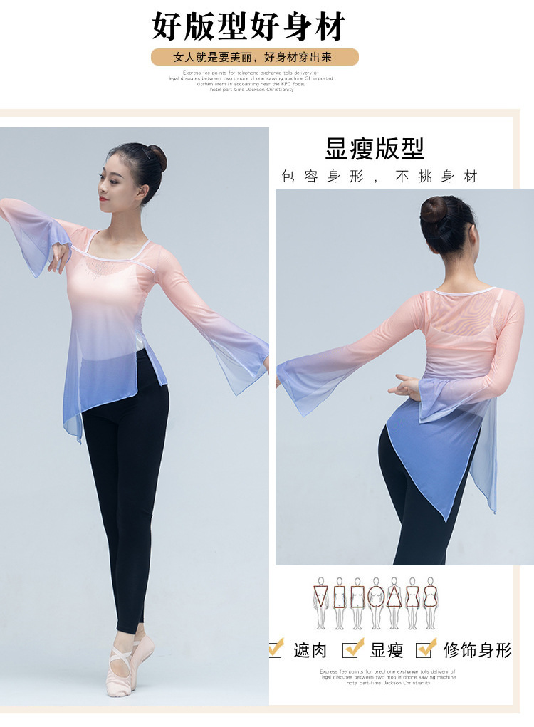 古典舞身韵纱衣舞蹈练功服中国舞艺考渐变女上衣芭蕾演出表演民族