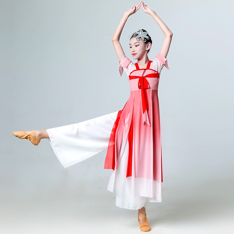 儿童古典舞蹈服中国舞身韵练功服纱衣女童民族舞扇子舞渐变演出服