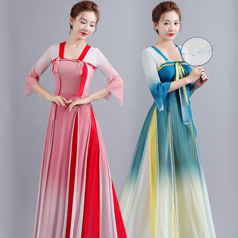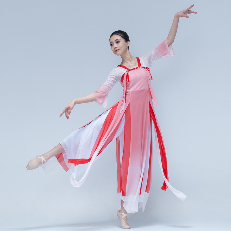 古典舞蹈服中国舞练功服女身韵飘逸春三月民族舞蹈演出服纱衣艺考