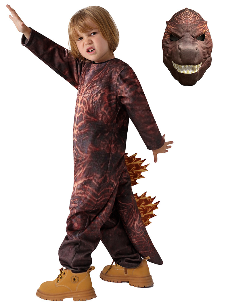 新款火焰哥斯拉cos服角色扮演哥吉拉舞台连体衣儿童人偶服表演服