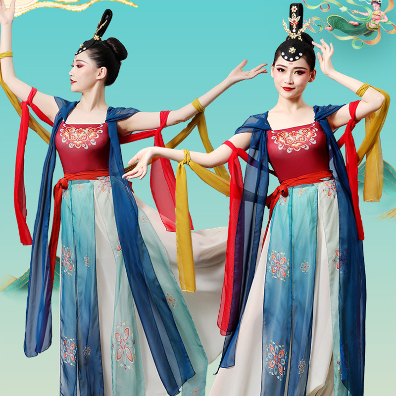 新款敦煌舞蹈服女古典舞中国风飘逸西域飞天舞蹈服装艺考生舞蹈服