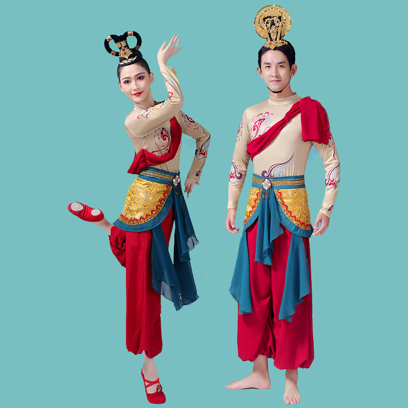 新款飞天敦煌舞灯笼裤石壁绝响古典舞演出服男女群舞纸扇书生2023