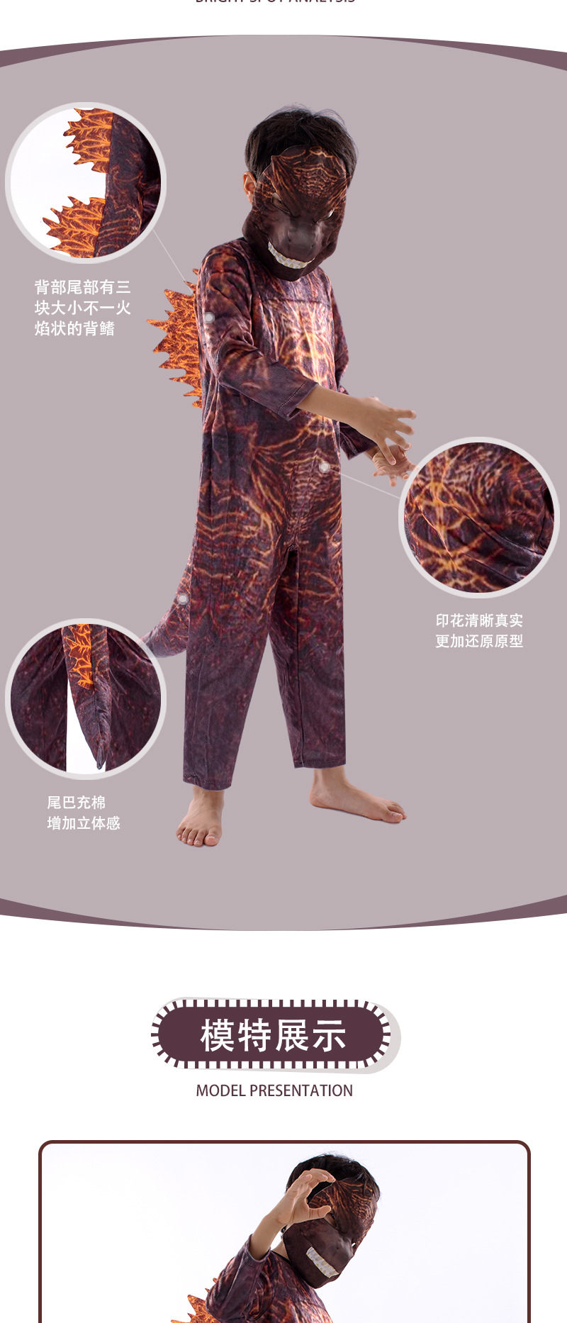 新款火焰哥斯拉cos服角色扮演哥吉拉舞台连体衣儿童人偶服表演服