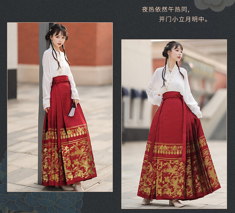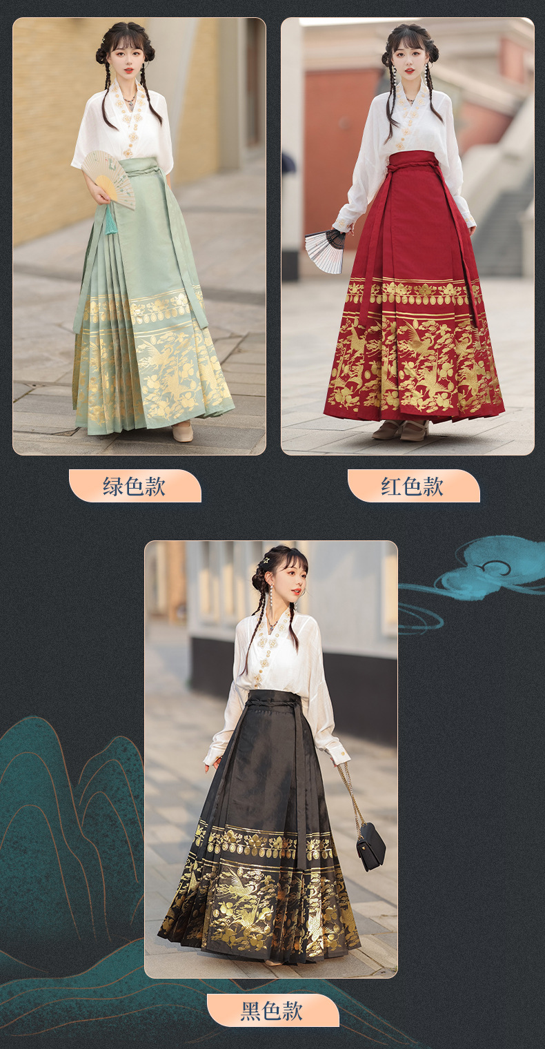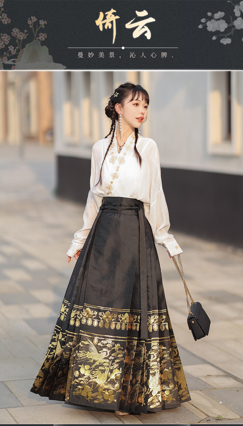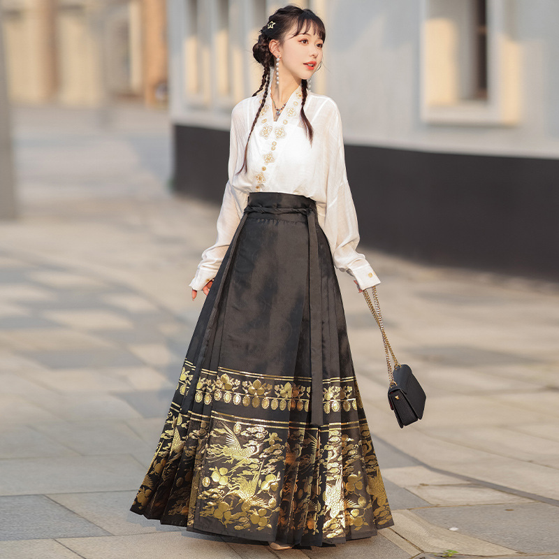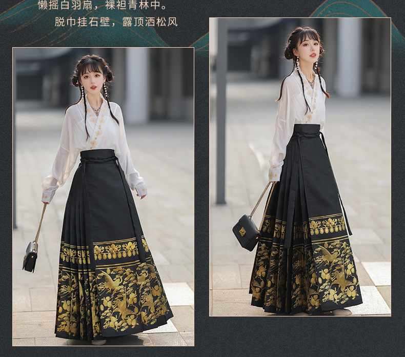 新中式国风女装明制改良汉服成人黑色马面裙套装半身裙2023新款夏