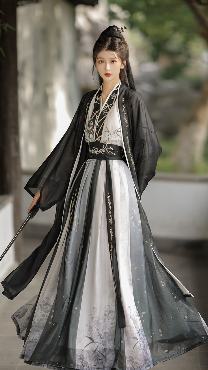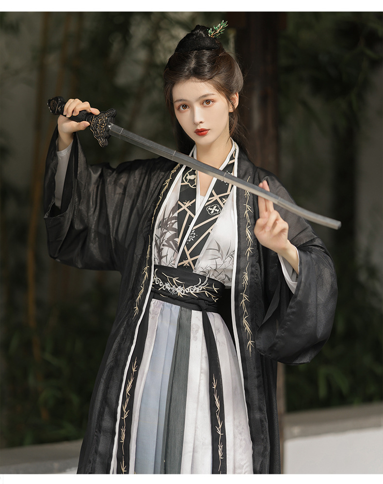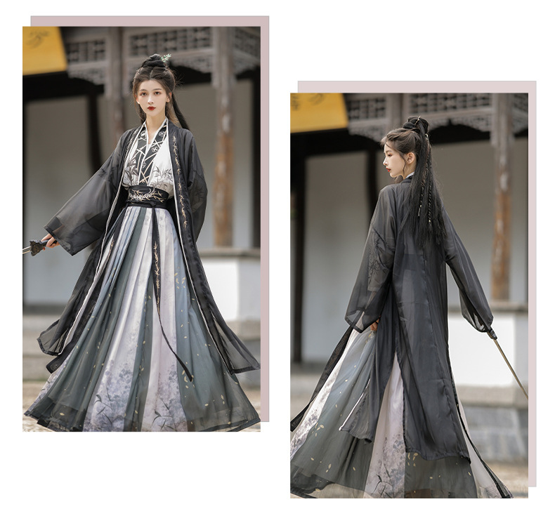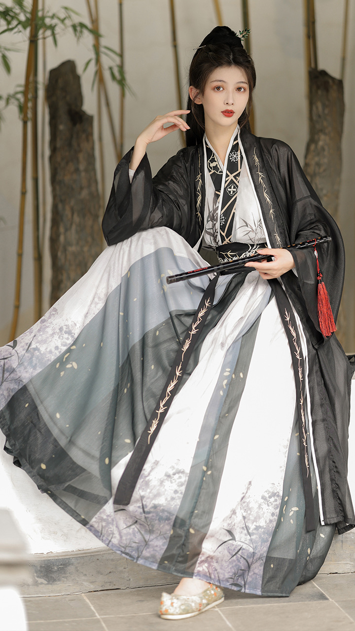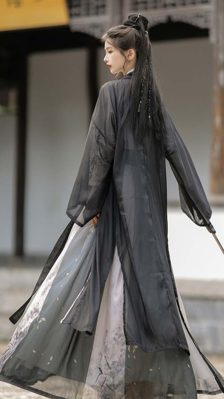 原创汉服女宋制褙子齐腰国风水墨男女同款酷飒日常百搭春秋季套装