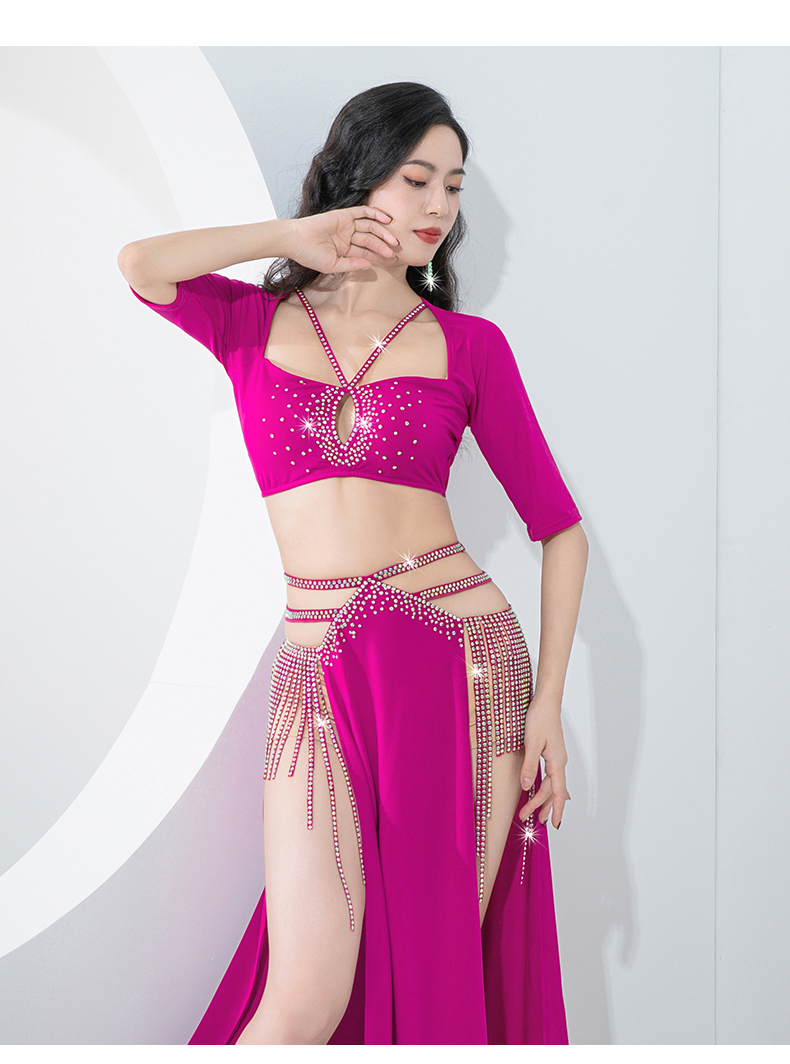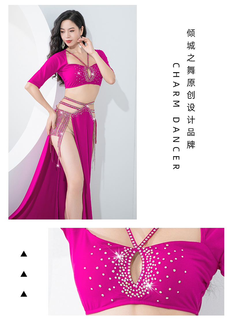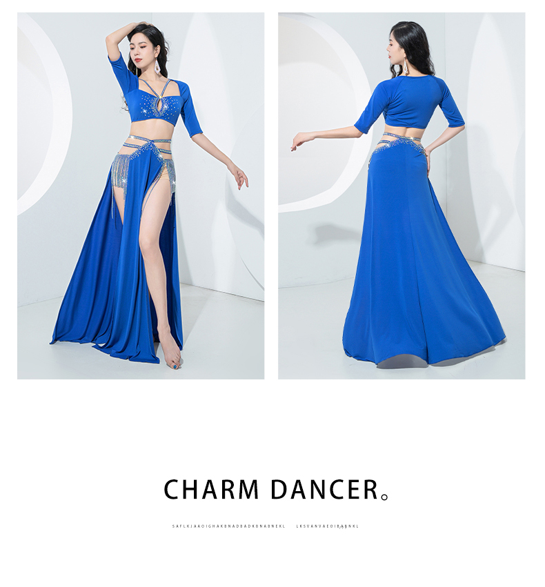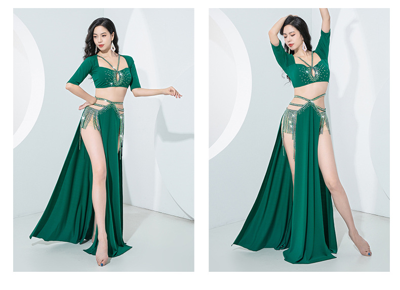 原创肚皮舞服装2023新款练功服双开叉显腿长流苏演出套装