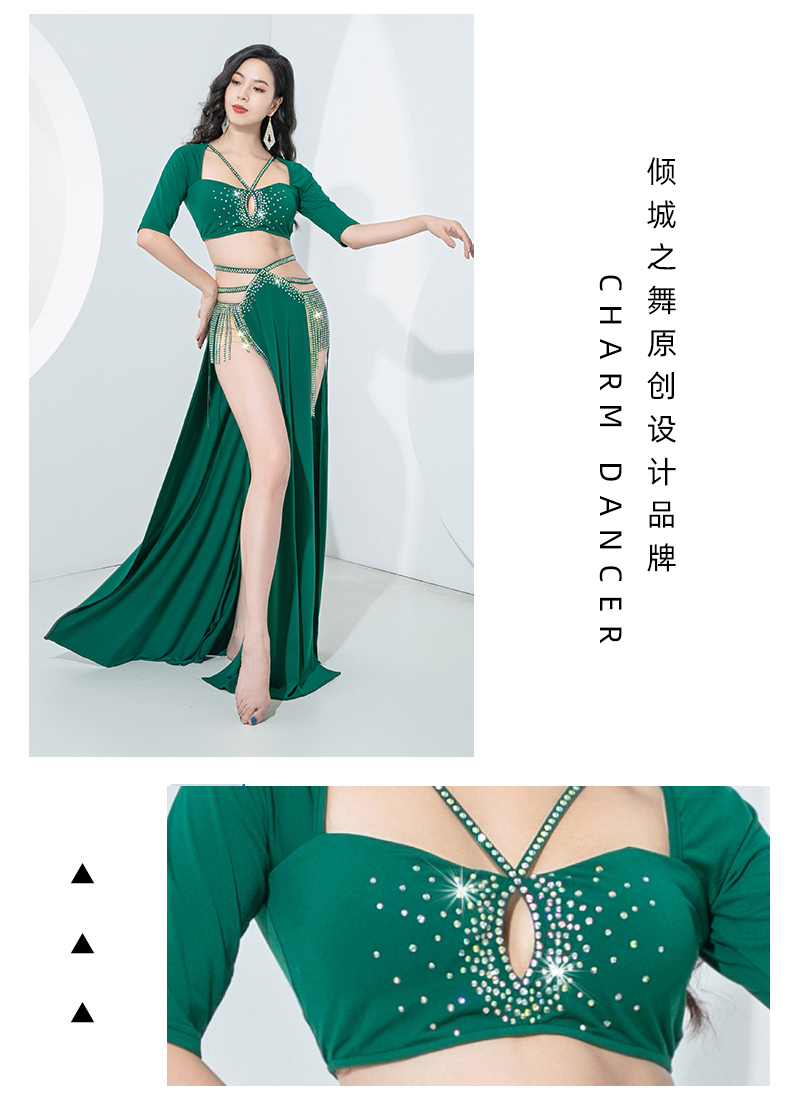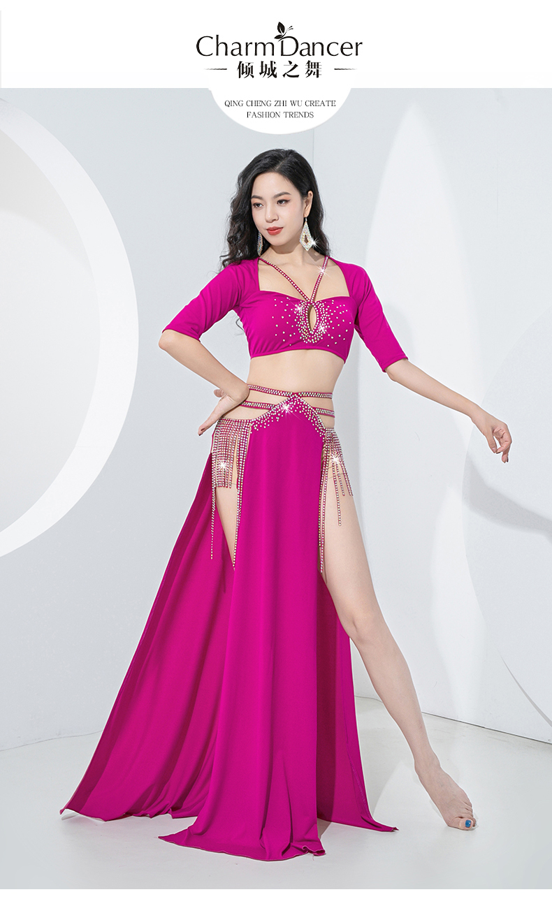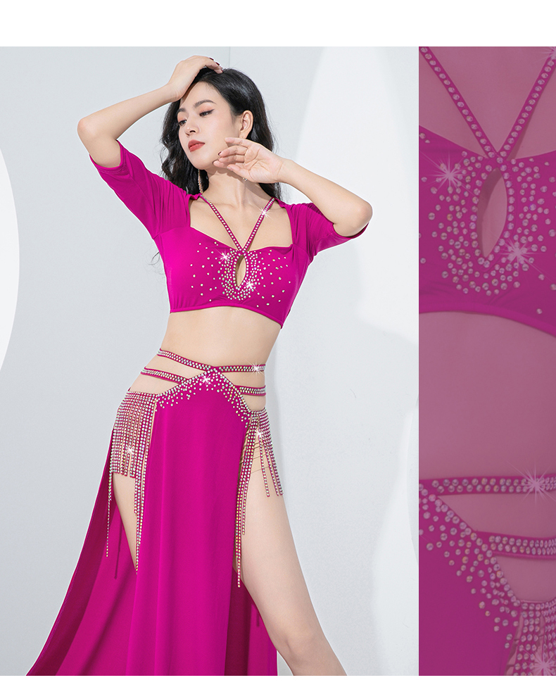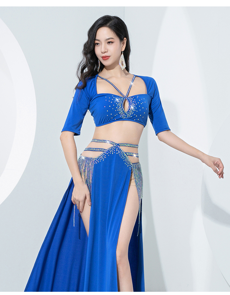 原创肚皮舞服装2023新款练功服双开叉显腿长流苏演出套装