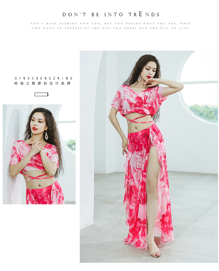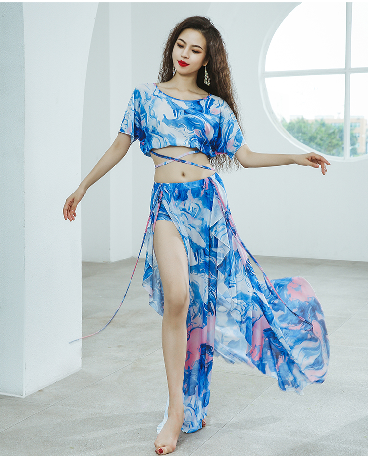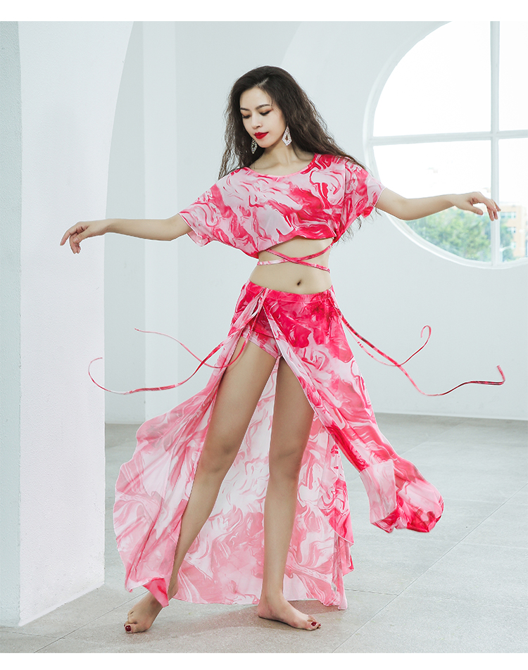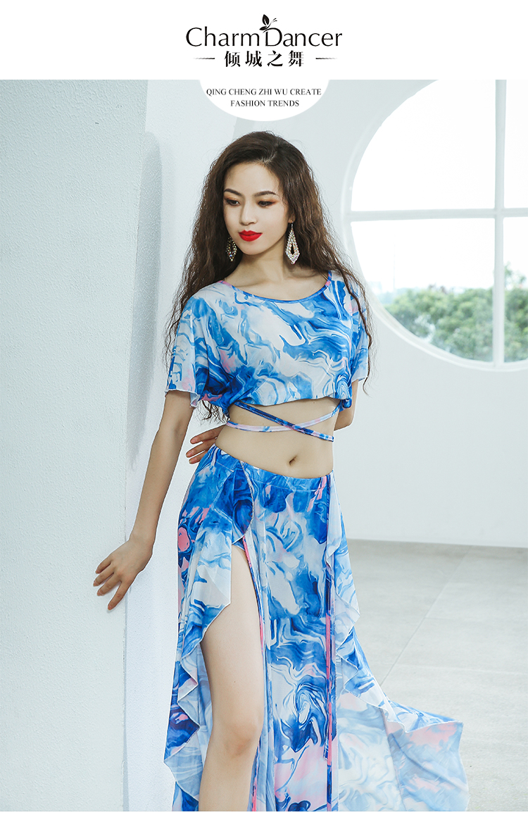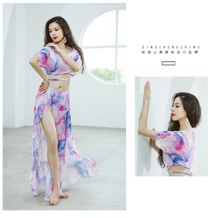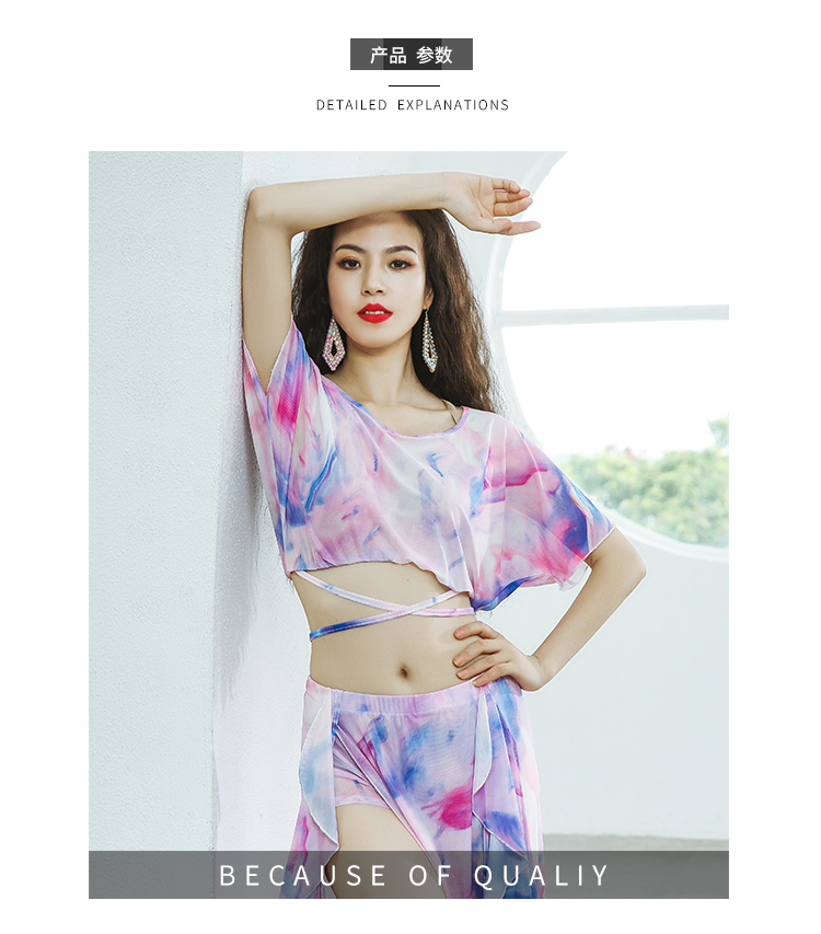 夏新款肚皮舞练功套装柔软透气速干裸感印花团服练习班服