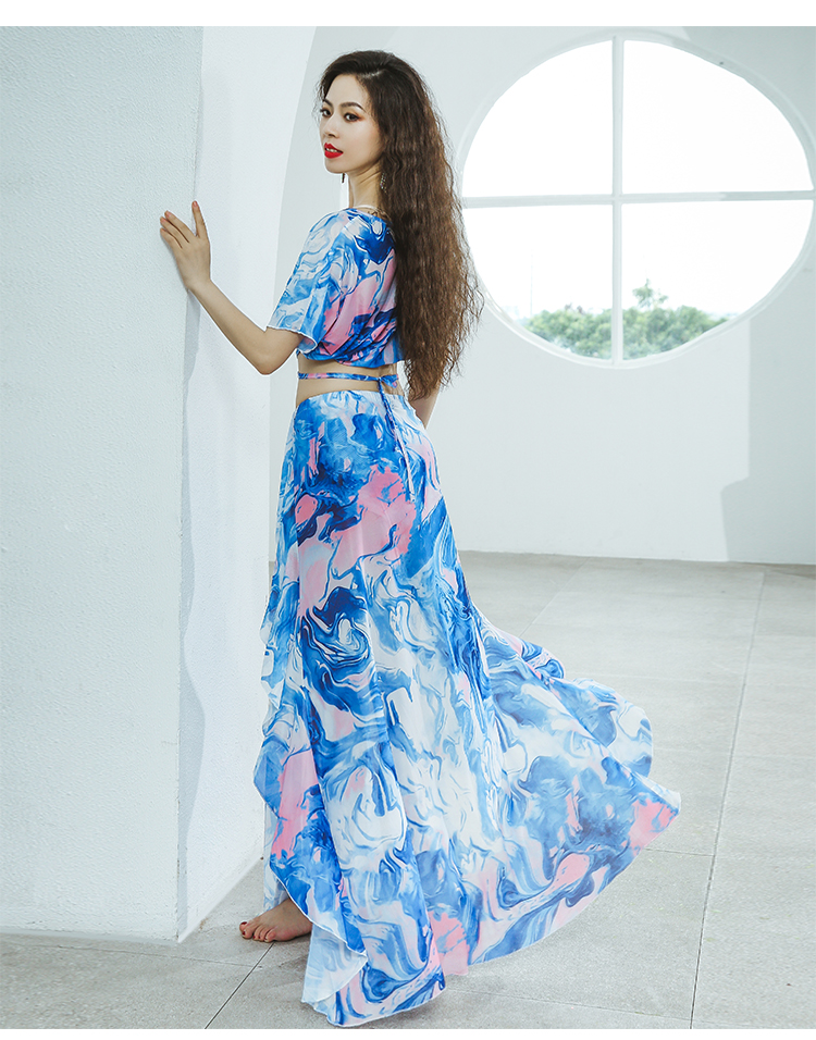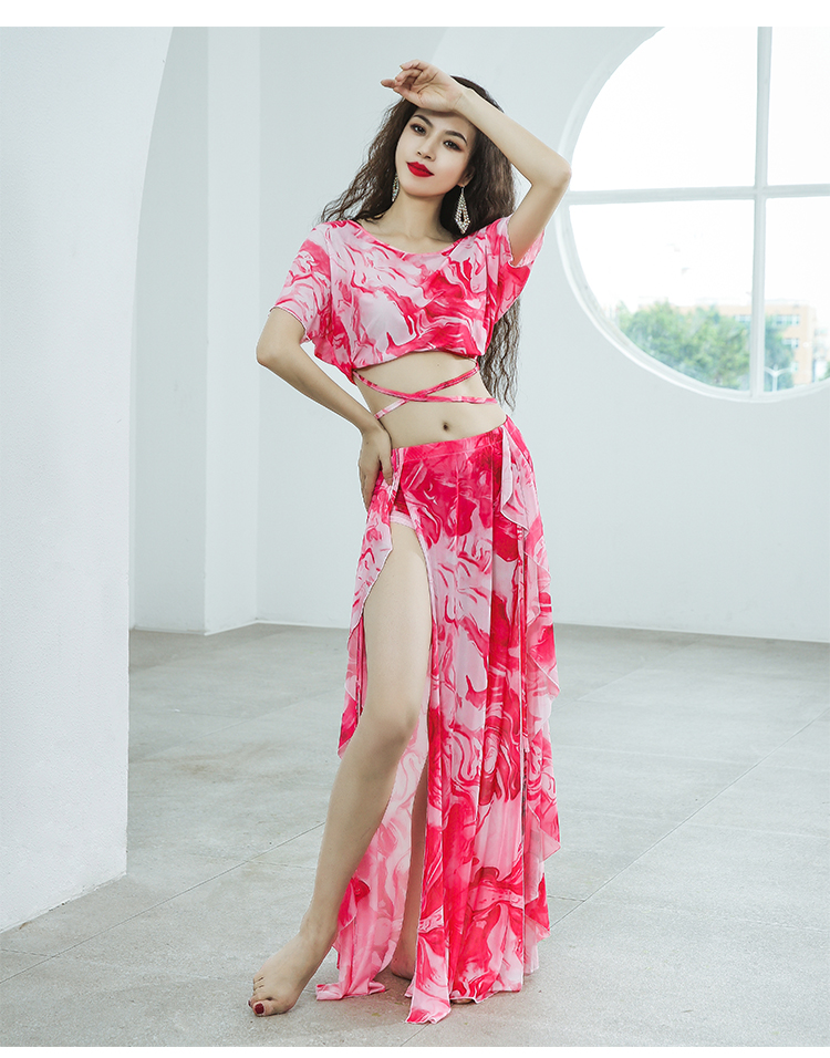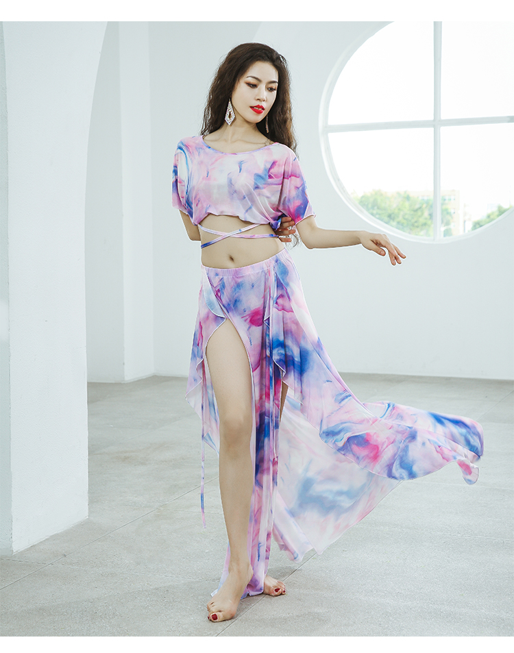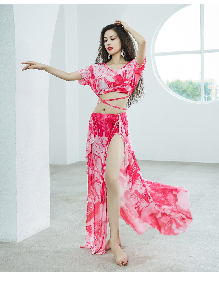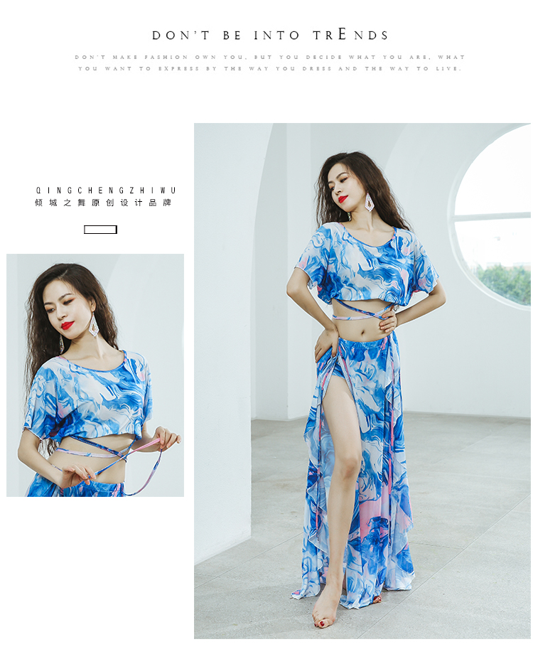 夏新款肚皮舞练功套装柔软透气速干裸感印花团服练习班服