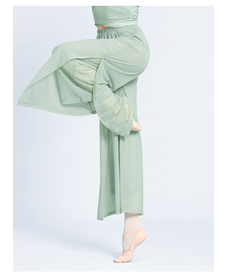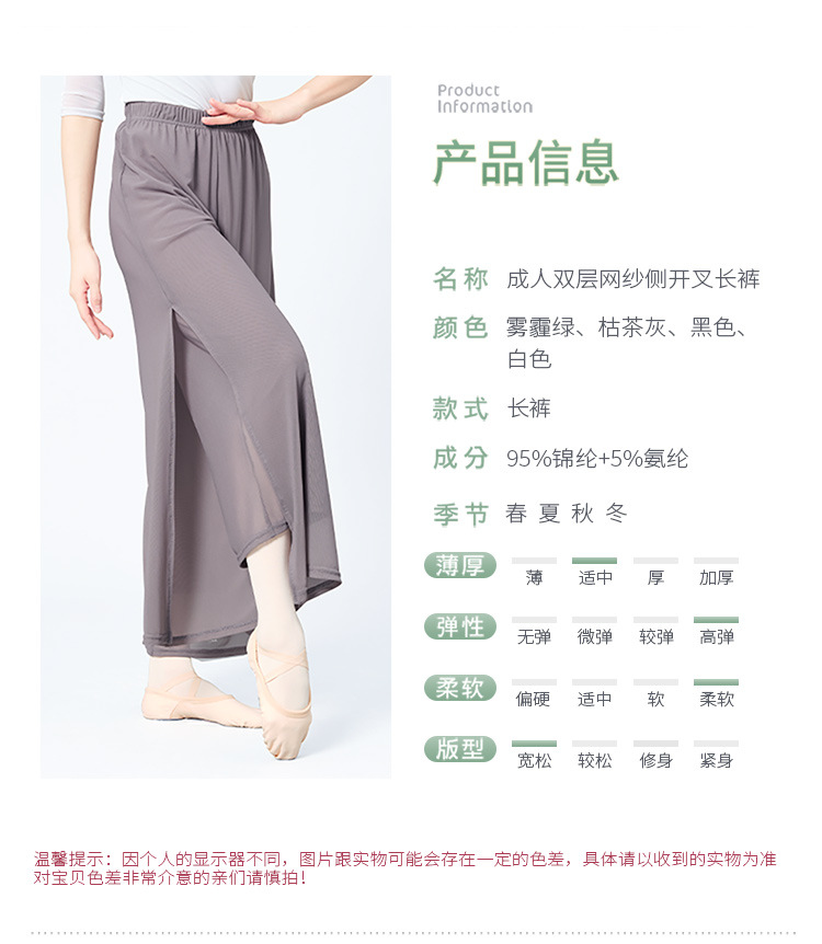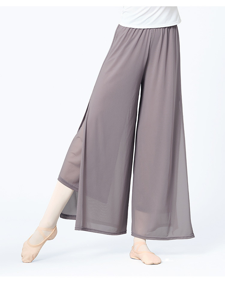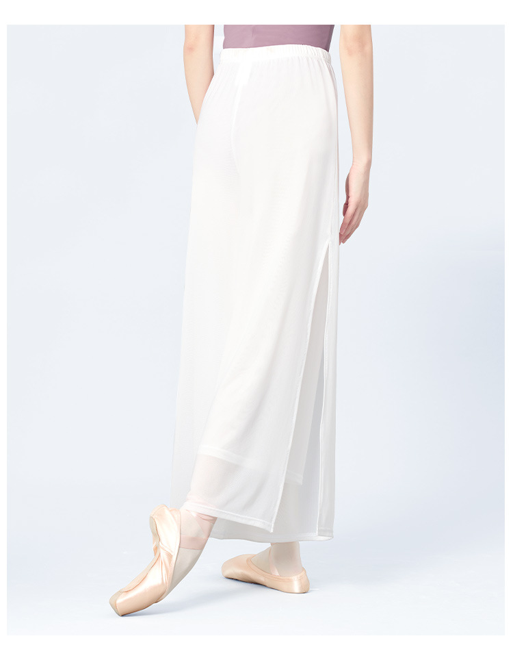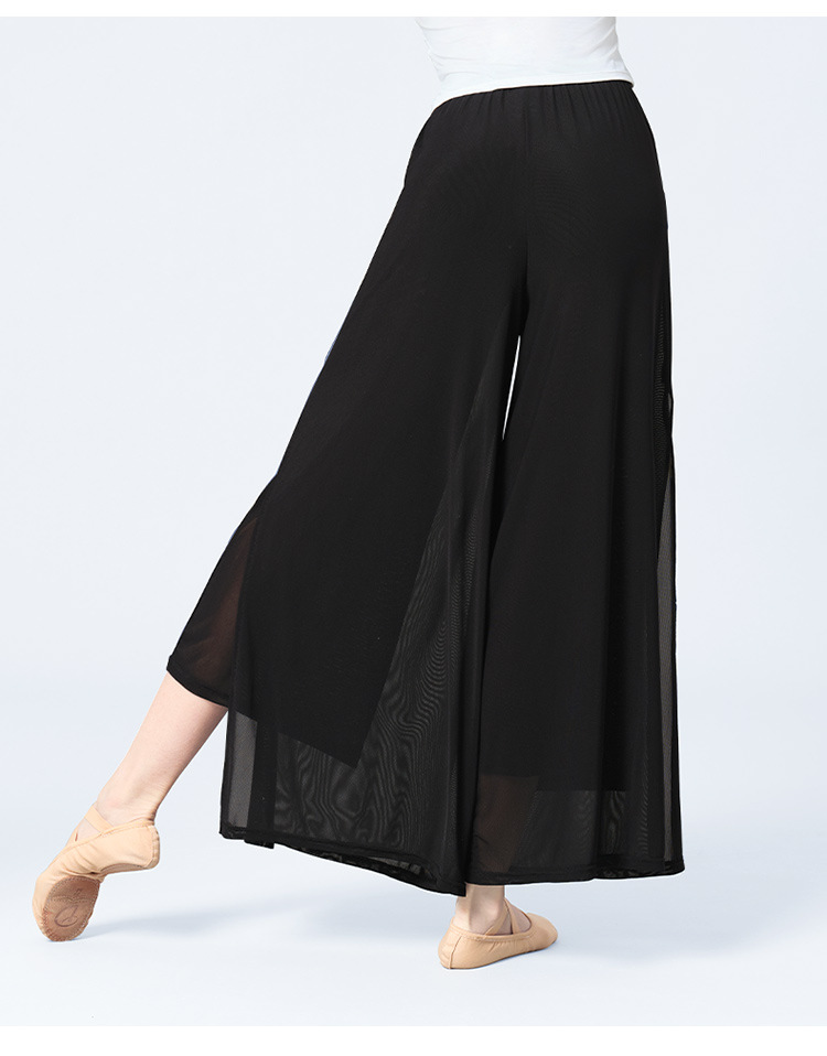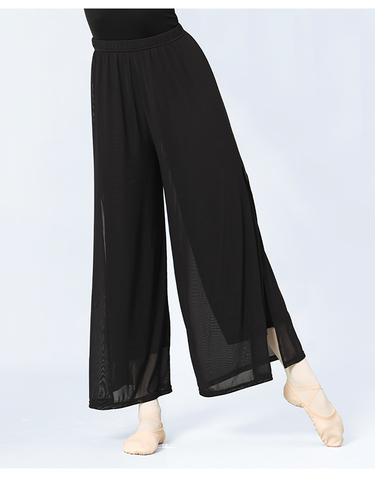 舞蹈服长裤女成人现代舞女双层网纱侧开叉长裤宽松形体古典练功裤