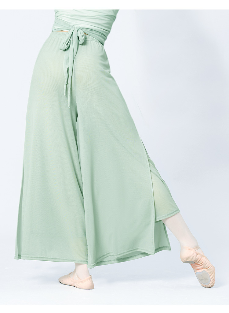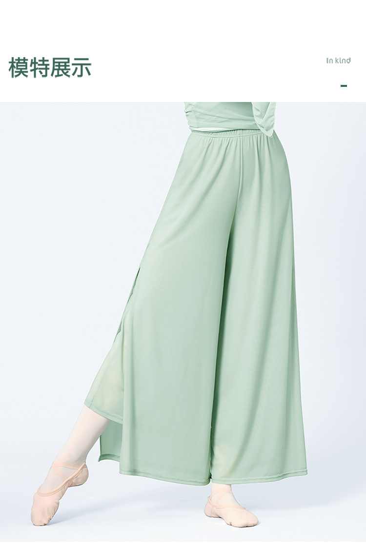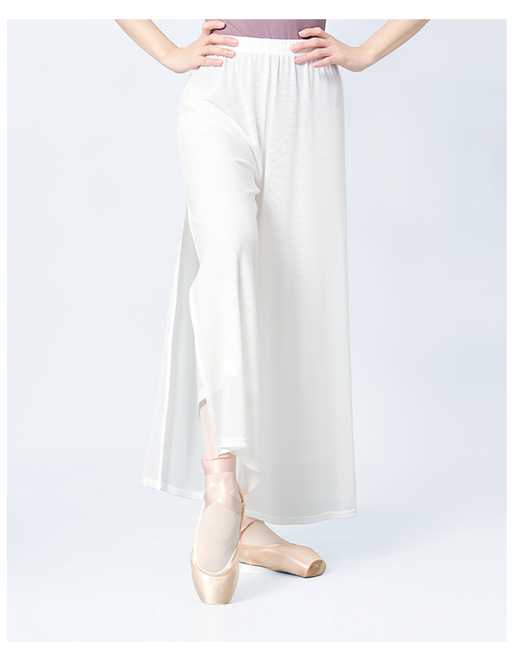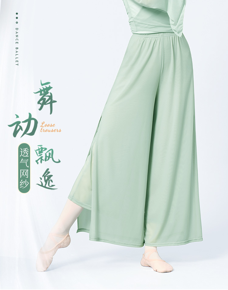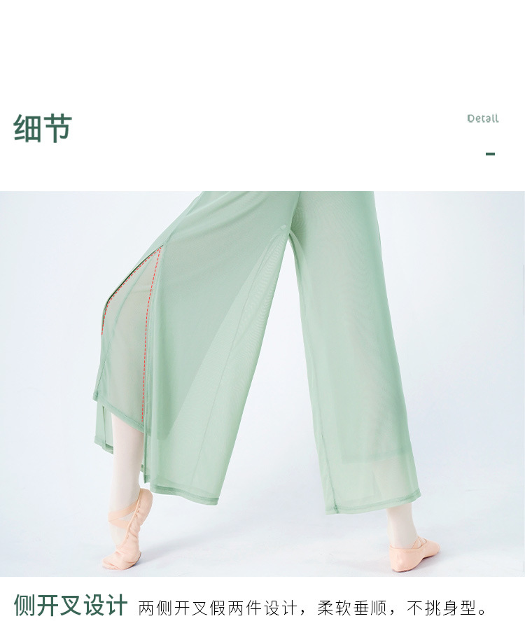 舞蹈服长裤女成人现代舞女双层网纱侧开叉长裤宽松形体古典练功裤