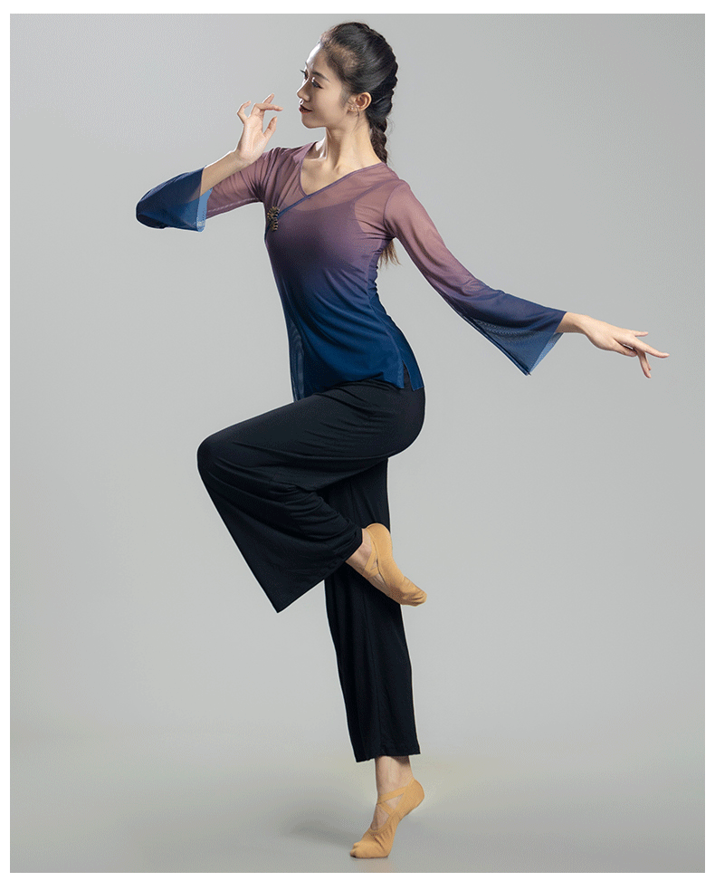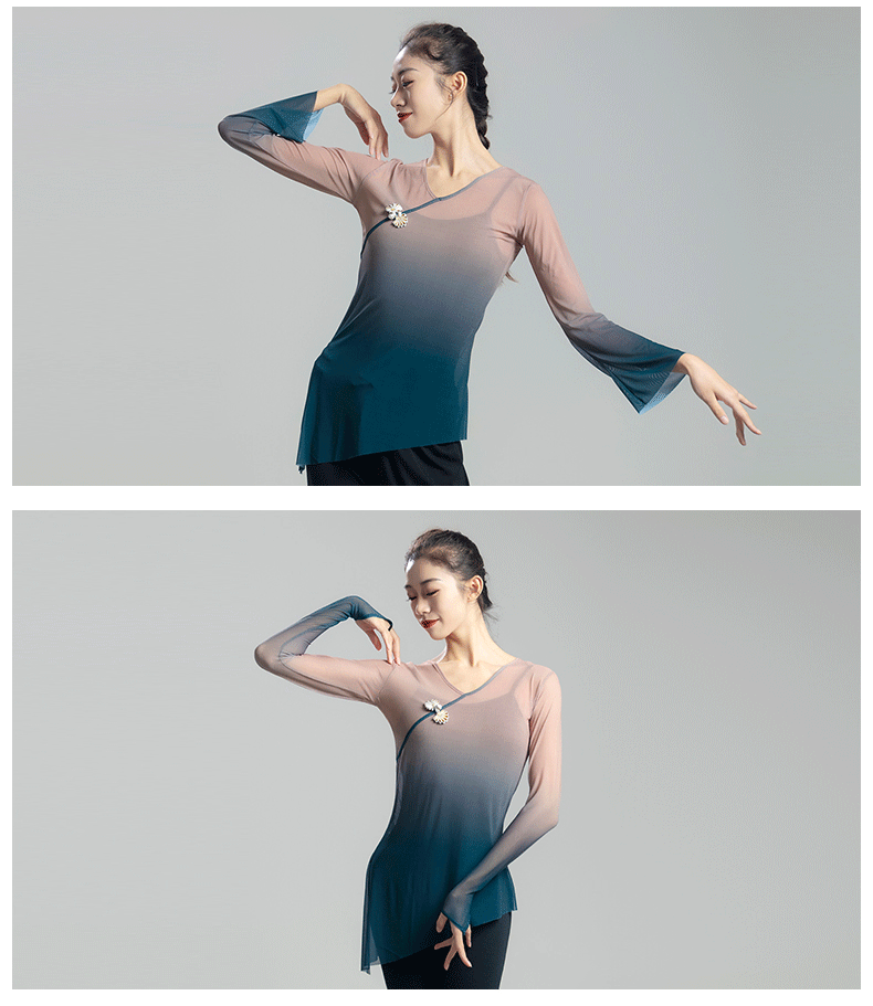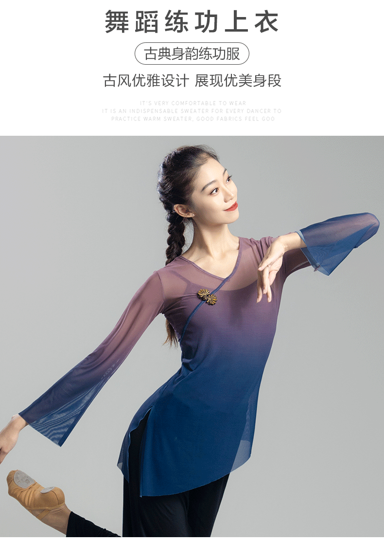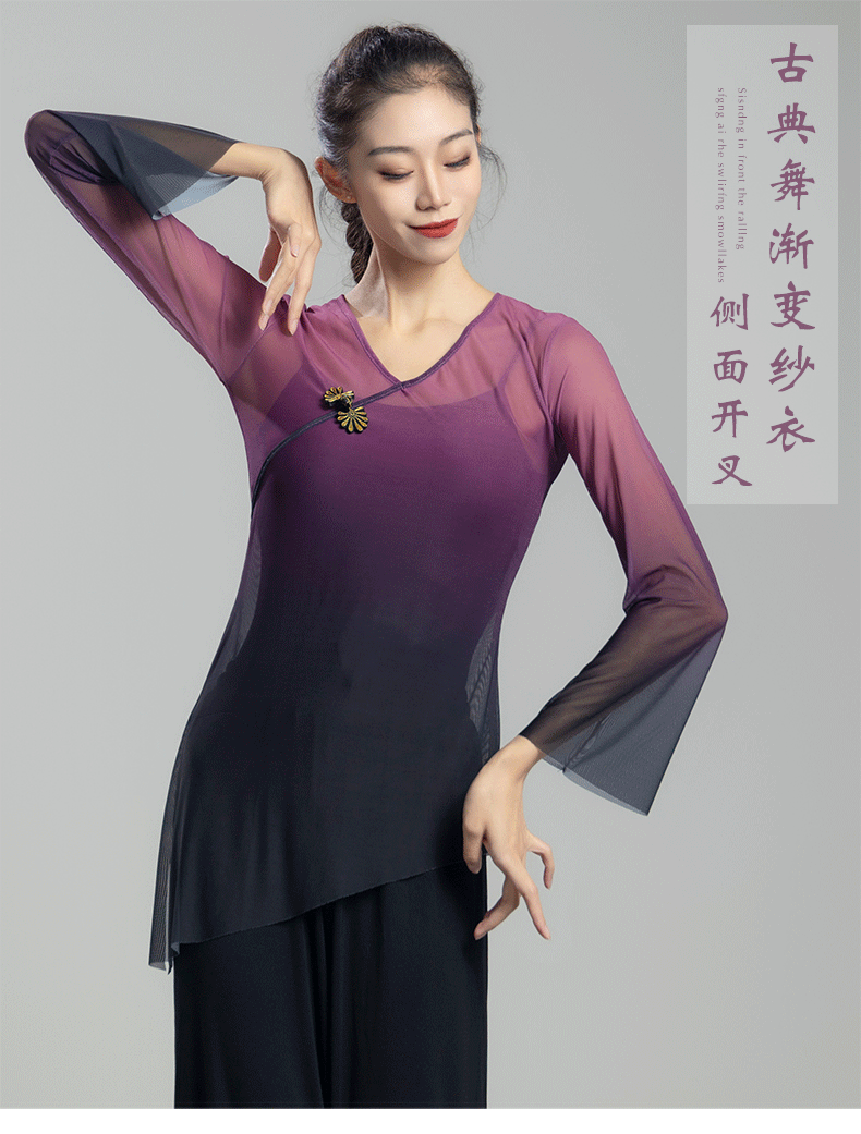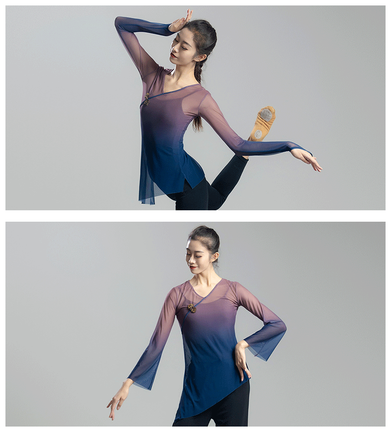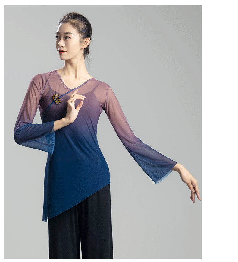 古典舞蹈服女渐变飘逸纱衣中国舞练功服女身韵仙气上衣演出服古风