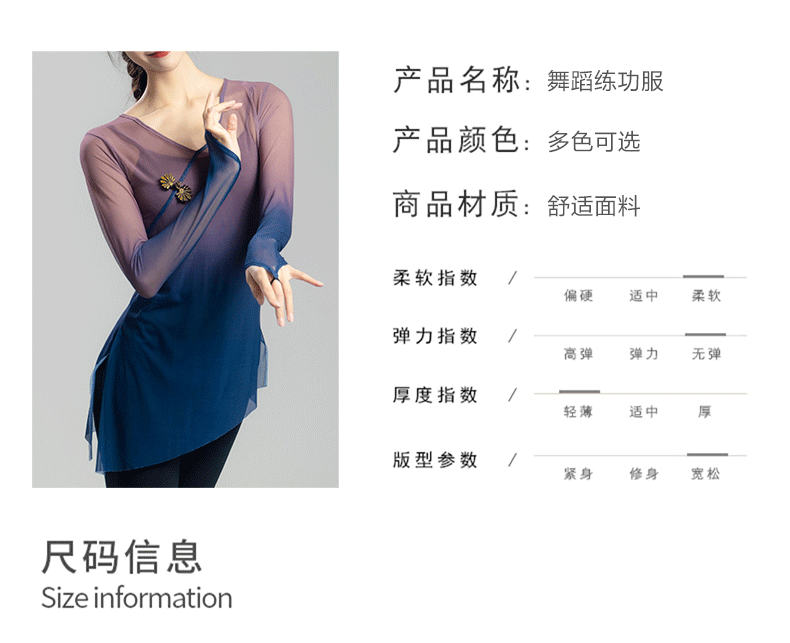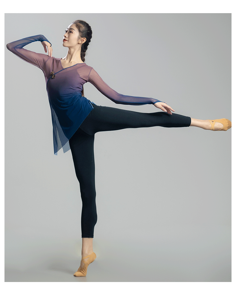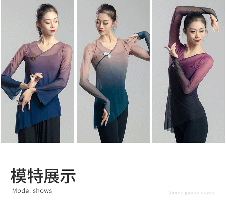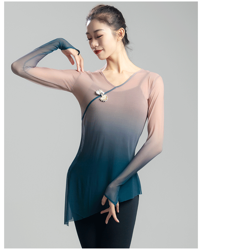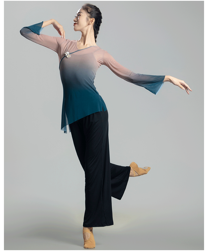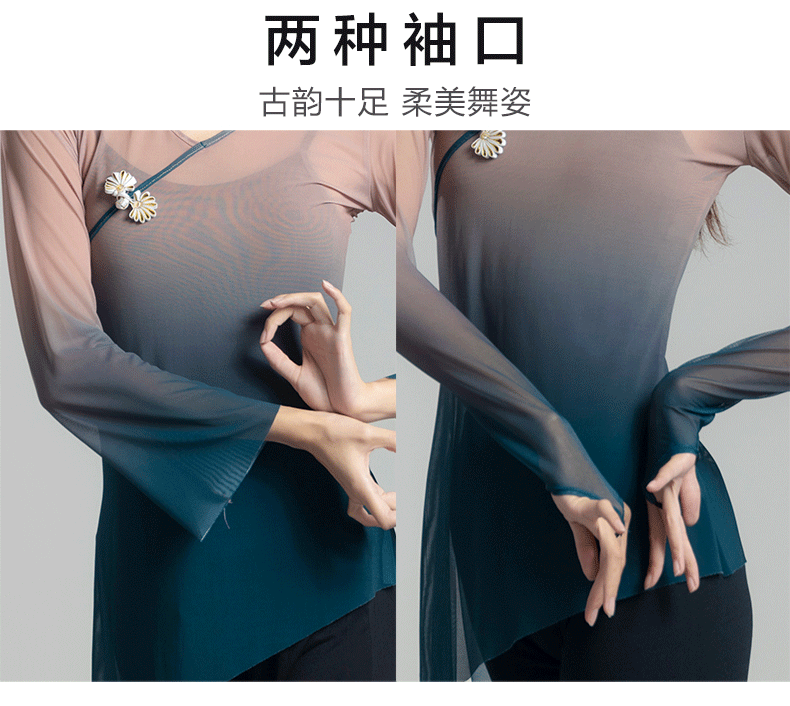 古典舞蹈服女渐变飘逸纱衣中国舞练功服女身韵仙气上衣演出服古风