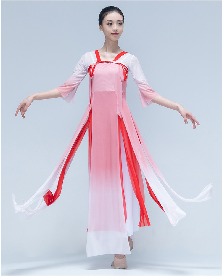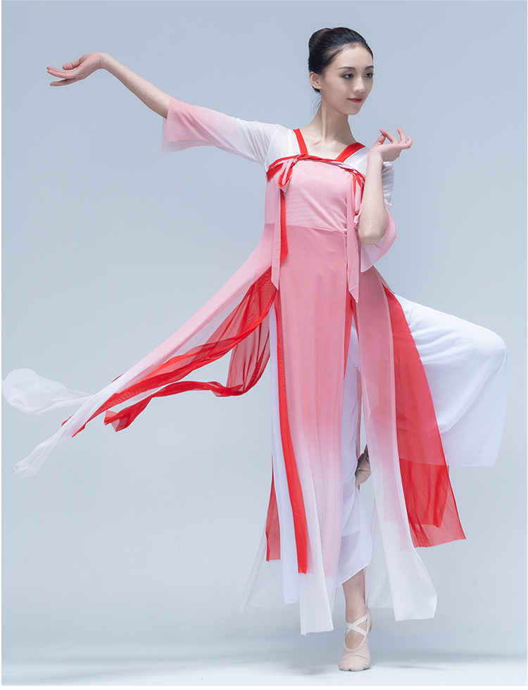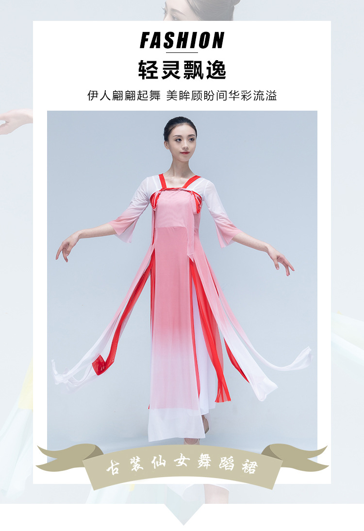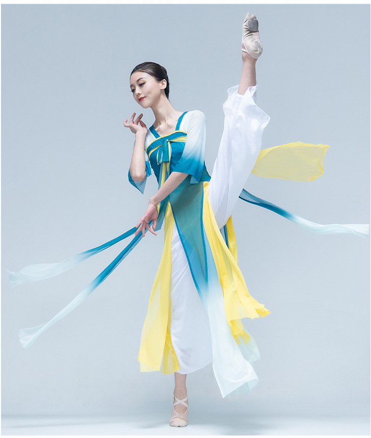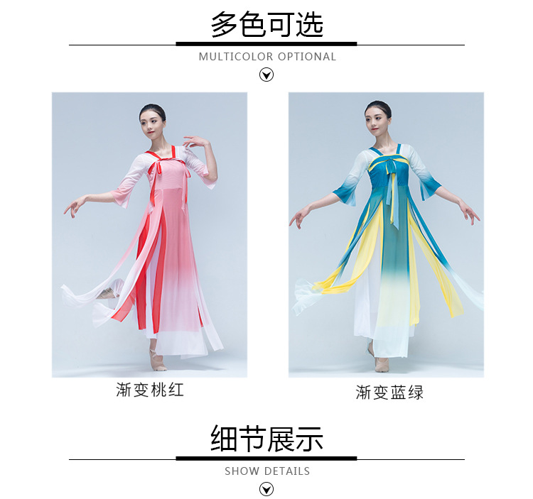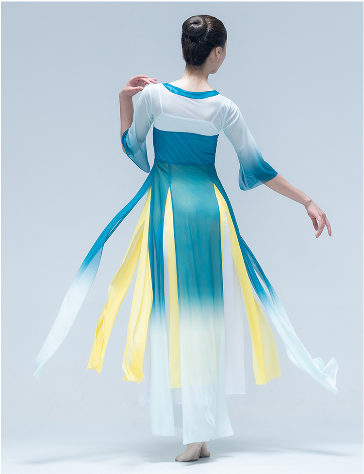 古典舞身韵渐变纱衣中国舞飘逸上衣女演出服装练功服长款民族艺考