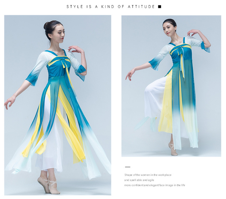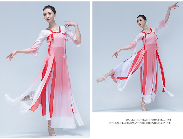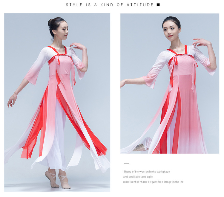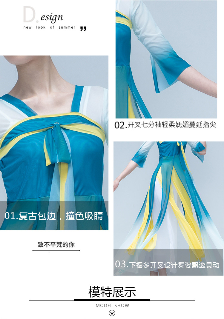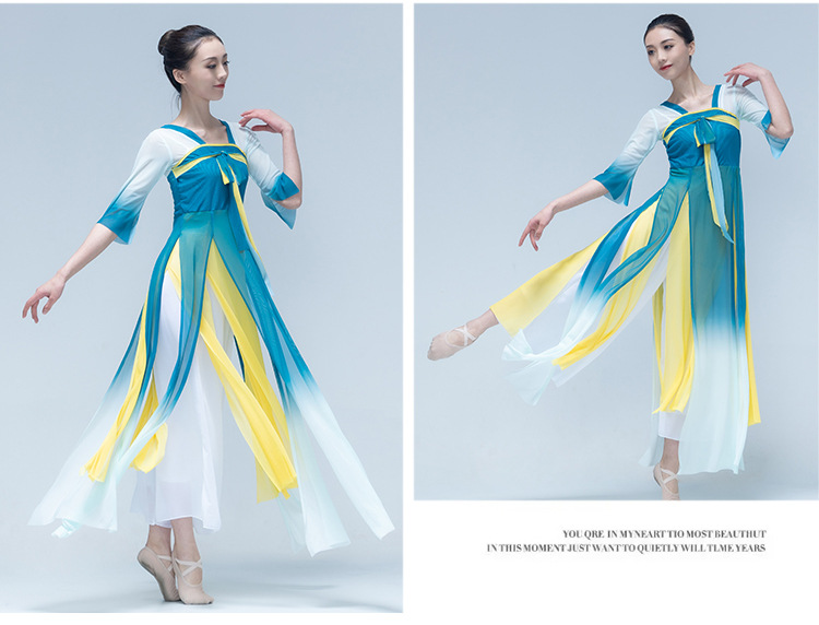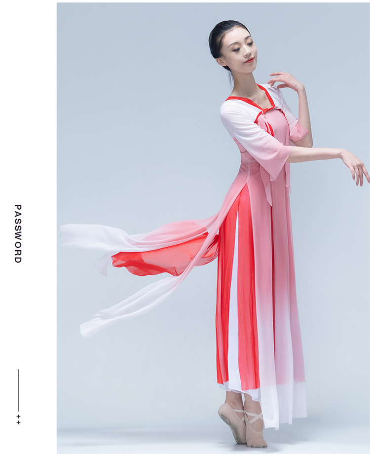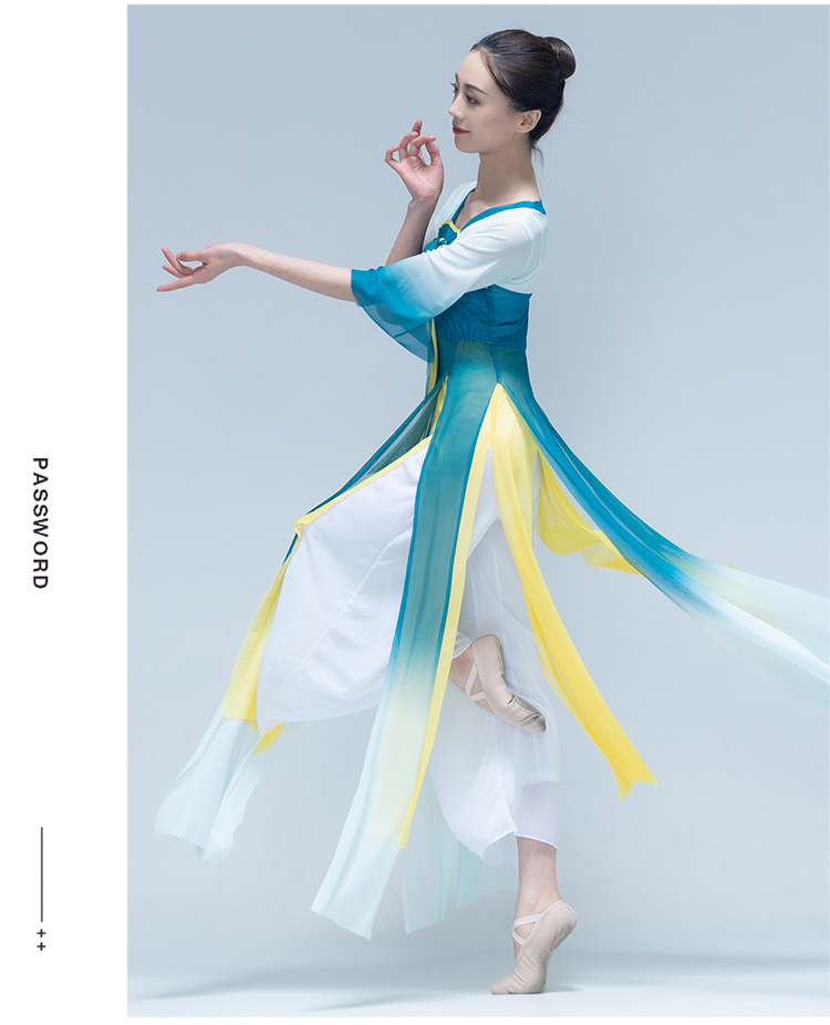 古典舞身韵渐变纱衣中国舞飘逸上衣女演出服装练功服长款民族艺考