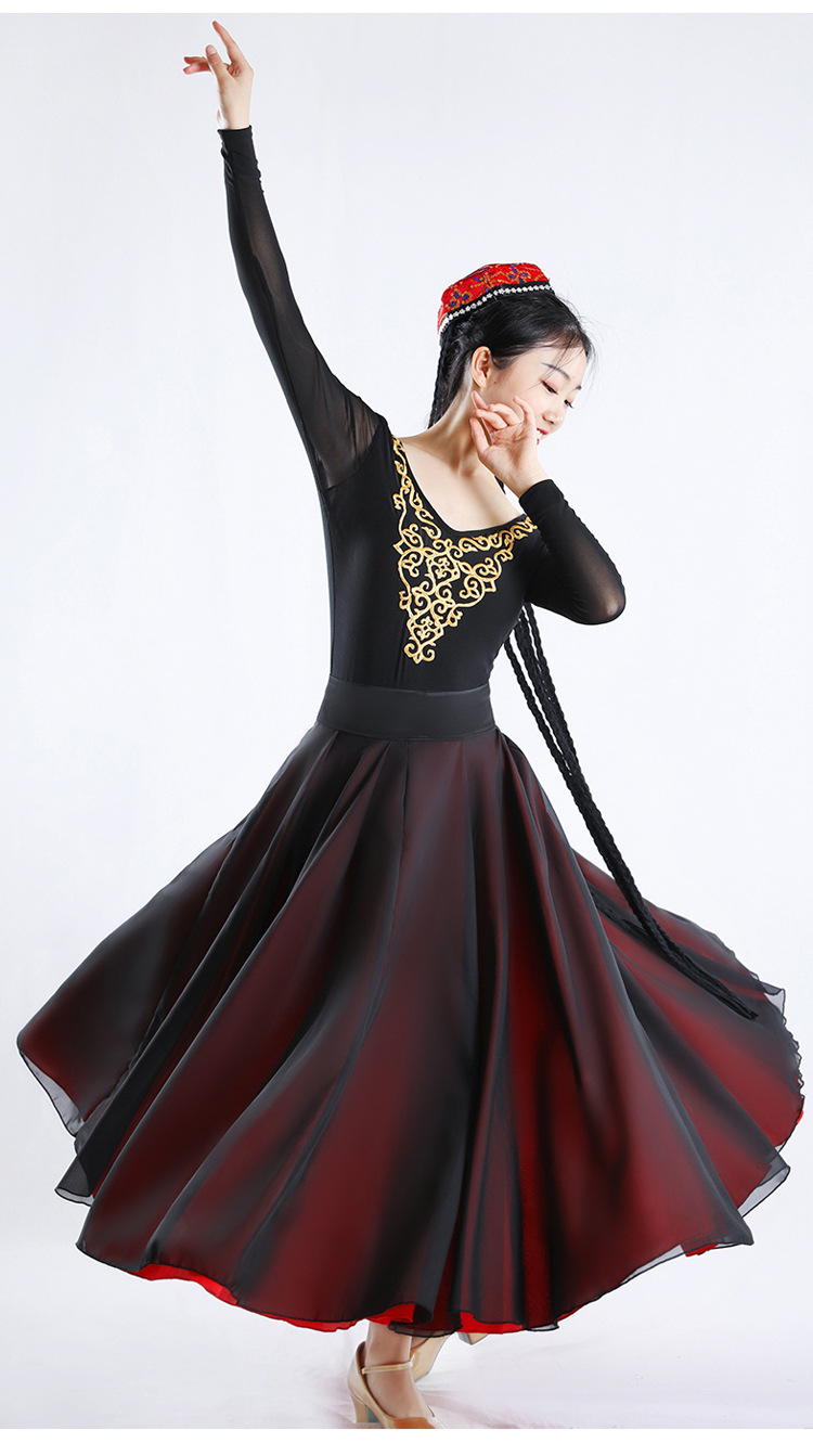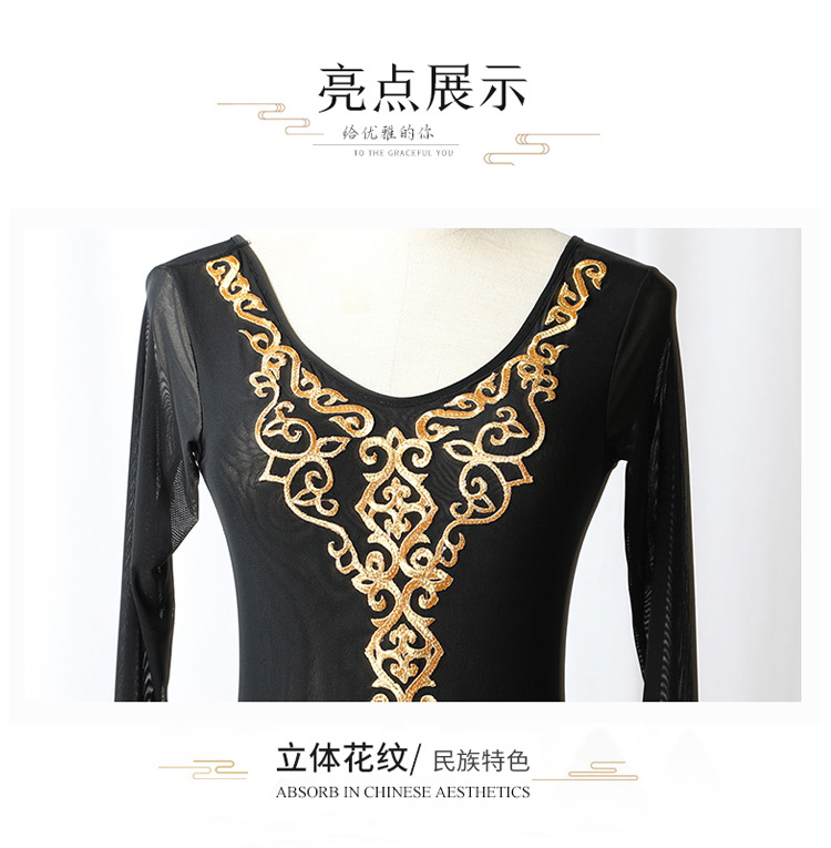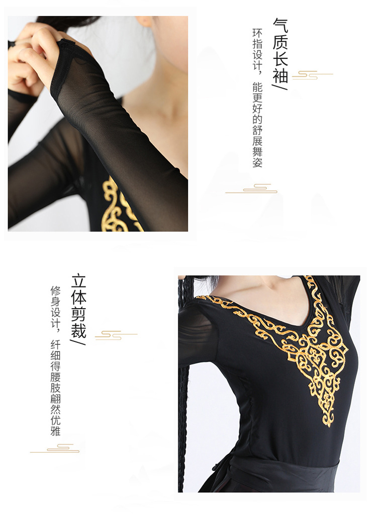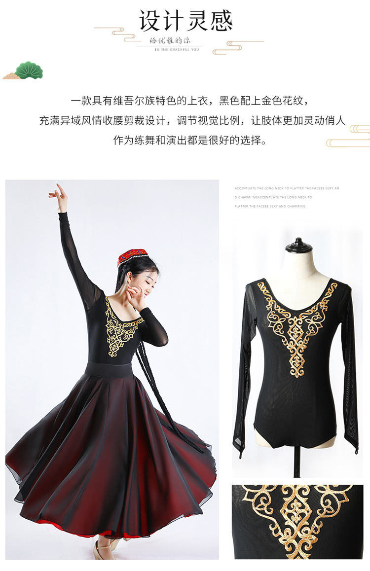 找泛儿新疆舞蹈演出服装维吾尔族回族练功服上衣女成人连体服长袖
