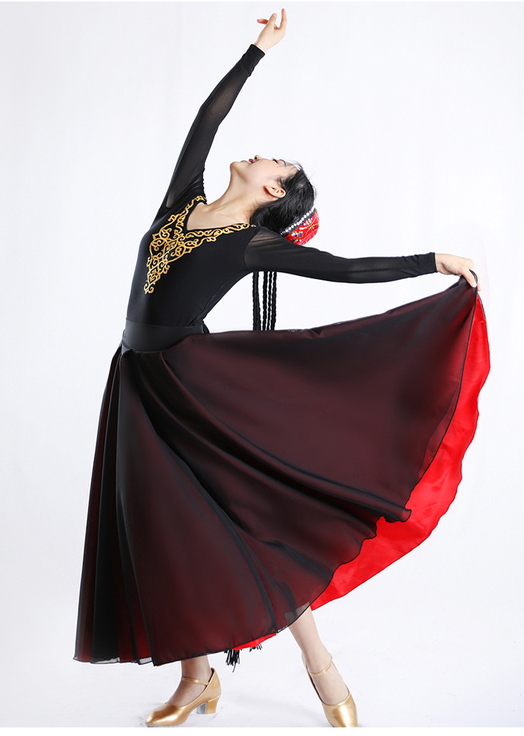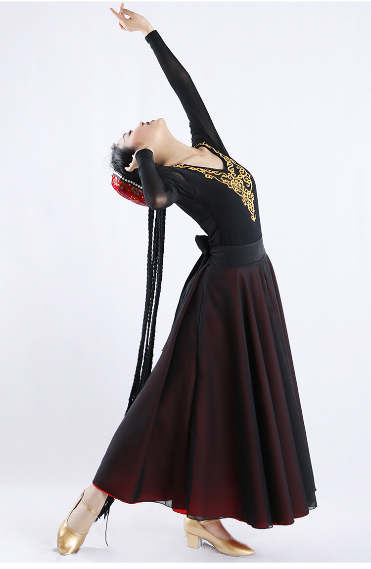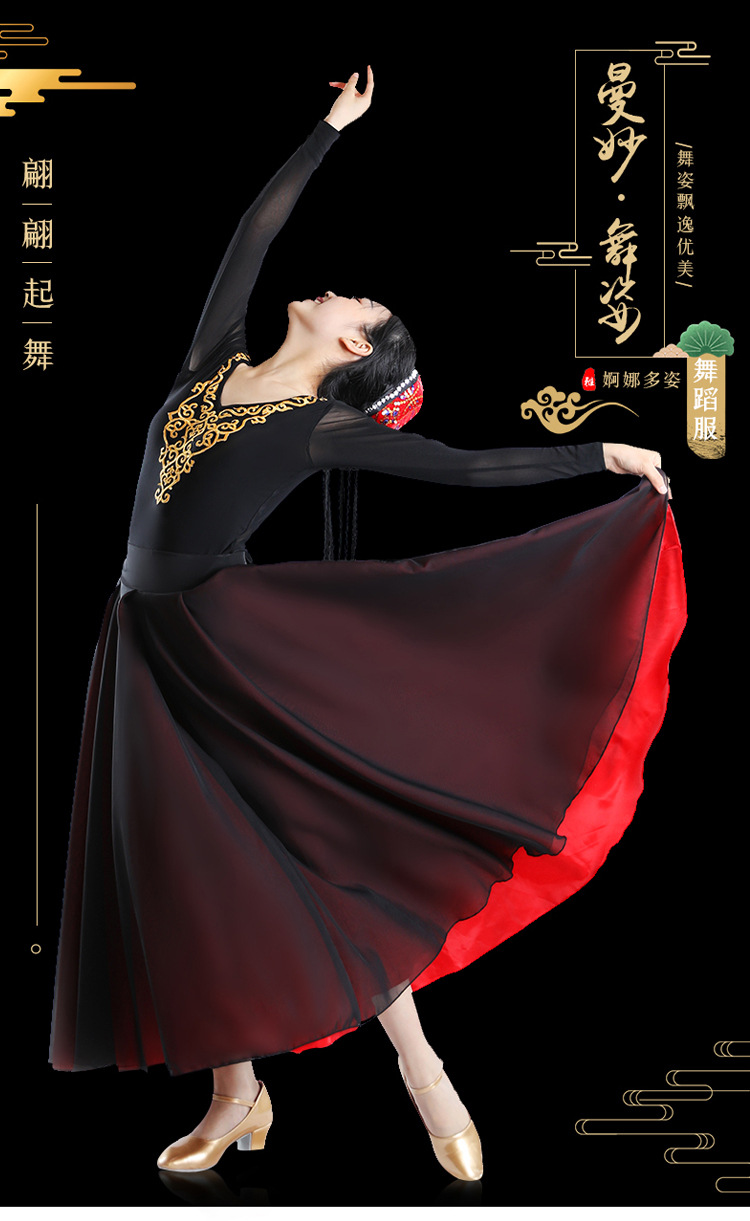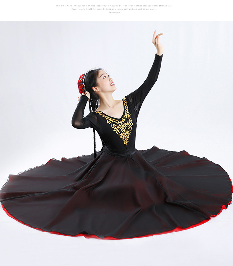 找泛儿新疆舞蹈演出服装维吾尔族回族练功服上衣女成人连体服长袖