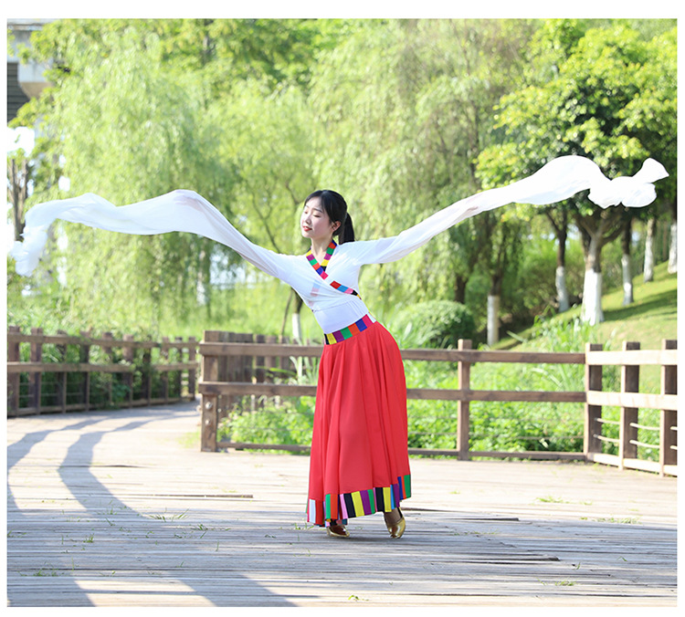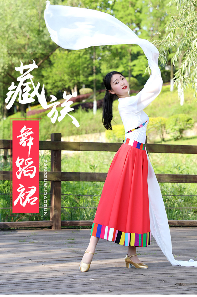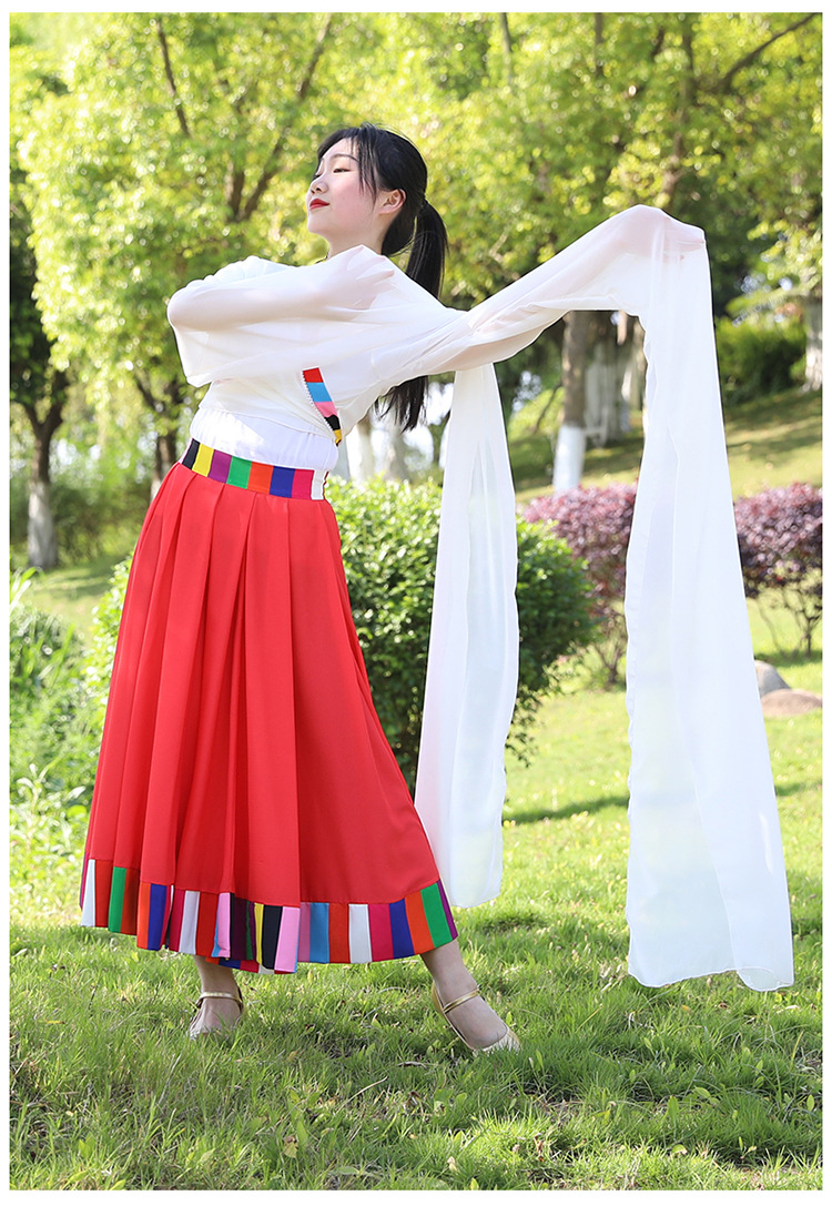 成人广场舞拉萨练习艺考水袖卓玛民族风大摆裙藏族舞蹈演出服装女