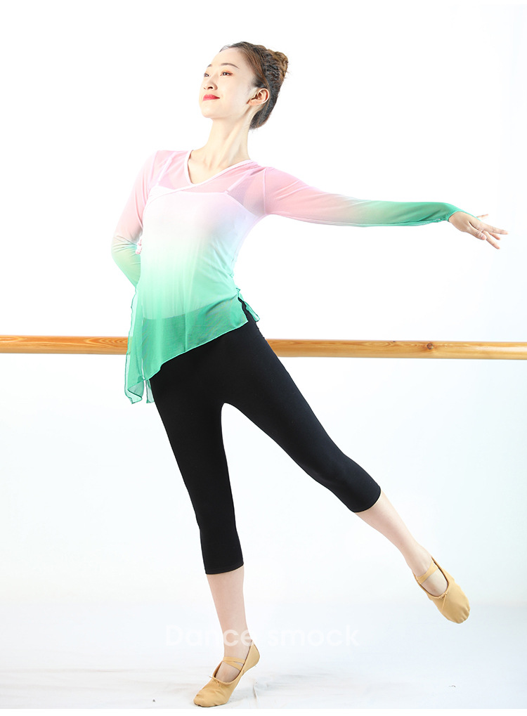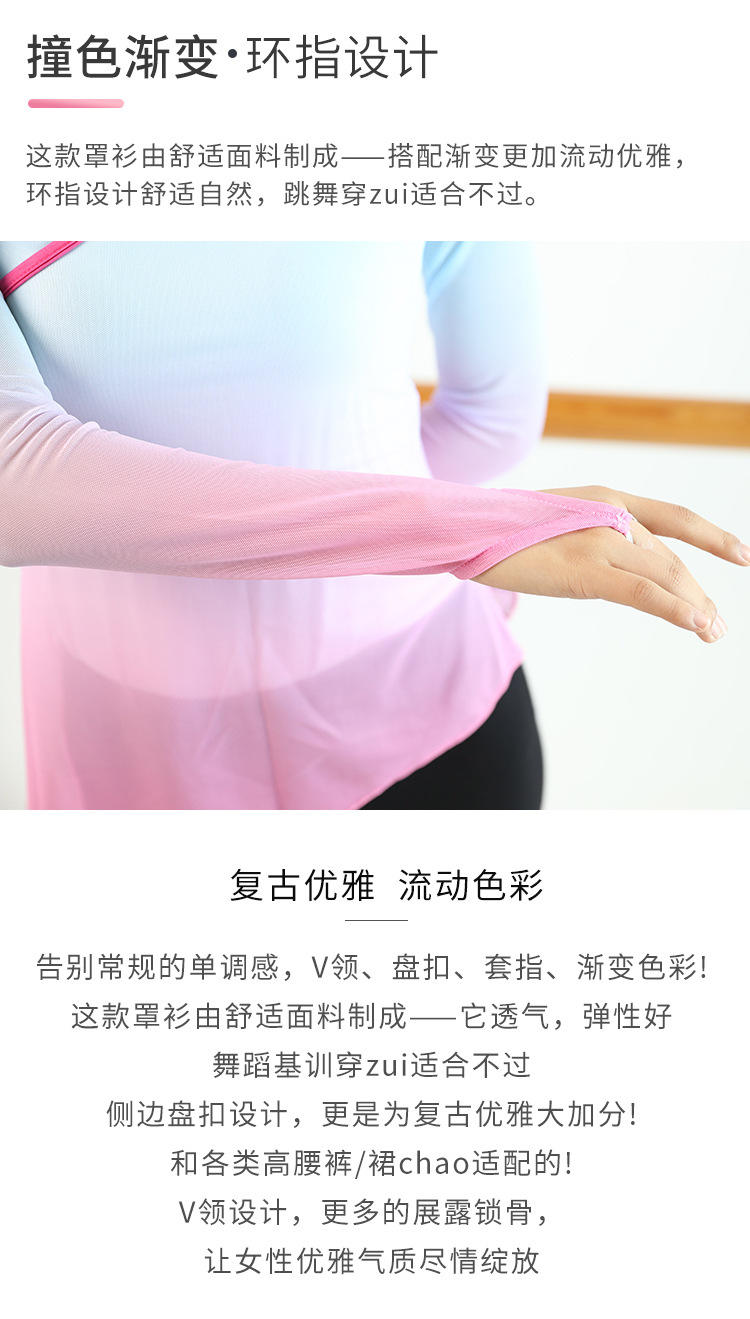 成人民族练功长款上衣身韵形体网纱舞蹈练功服舞蹈服女古典舞纱衣